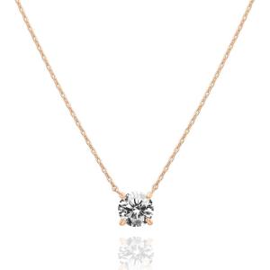 PAVOI 14K Gold Plated Crystal Solitaire 1.5 Carat (7.3mm) Cubic Zirconia Dainty Choker Necklace | Gold Necklaces for Women(Rose Gold)
