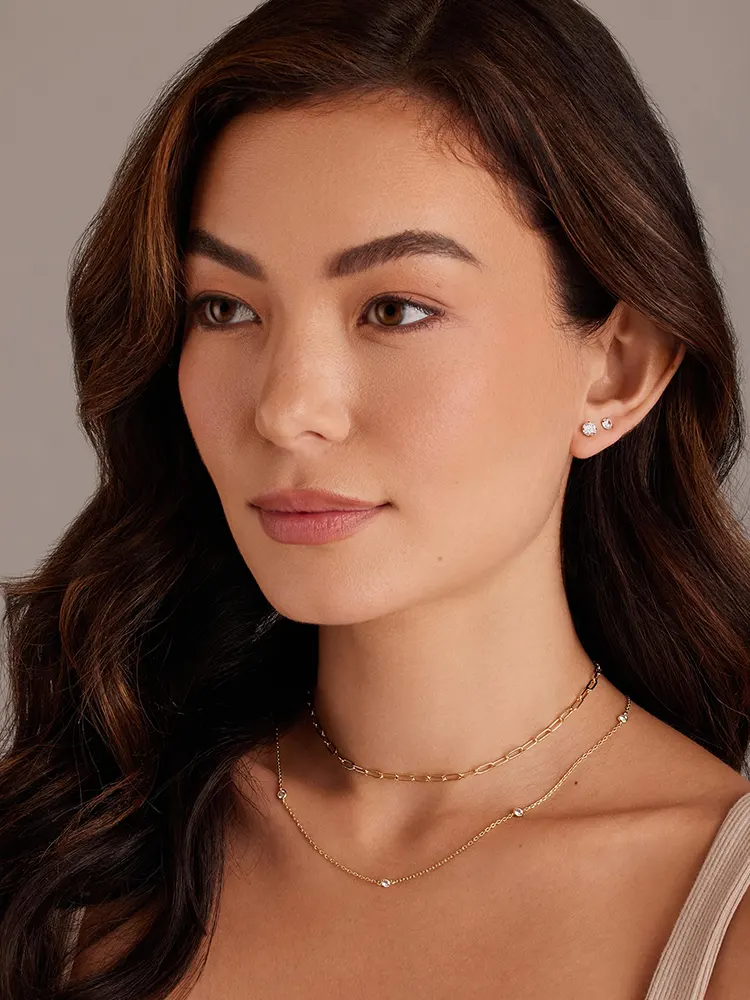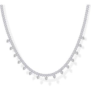 PAVOI 14K Gold Plated Station Necklace – Simulated Diamond Layering Necklaces – Womens CZ Chain(White Gold)