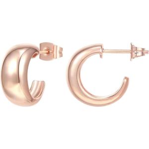 PAVOI 14K Gold Plated Thick Dome Huggie Earrings for Women – 925 Sterling Silver Posts Small Wide Round Hoop Earrings(Rose Gold)