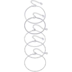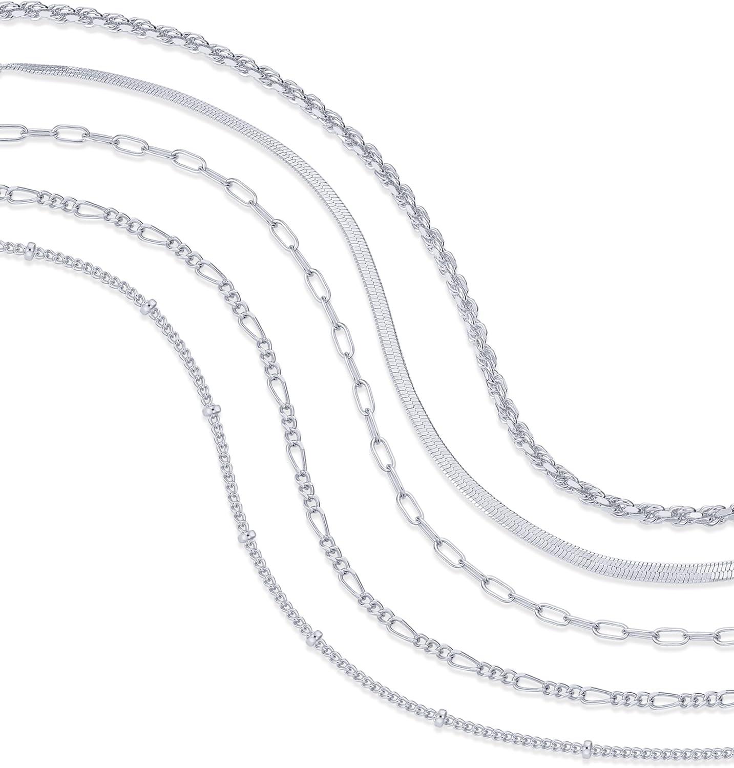 PAVOI 18K Gold Plated Chain Bracelet Pack for Women | Jewelry Set of 5 Stackable Bracelets Paperclip Snake Rope Figaro Beaded Chains(5-Piece Set)