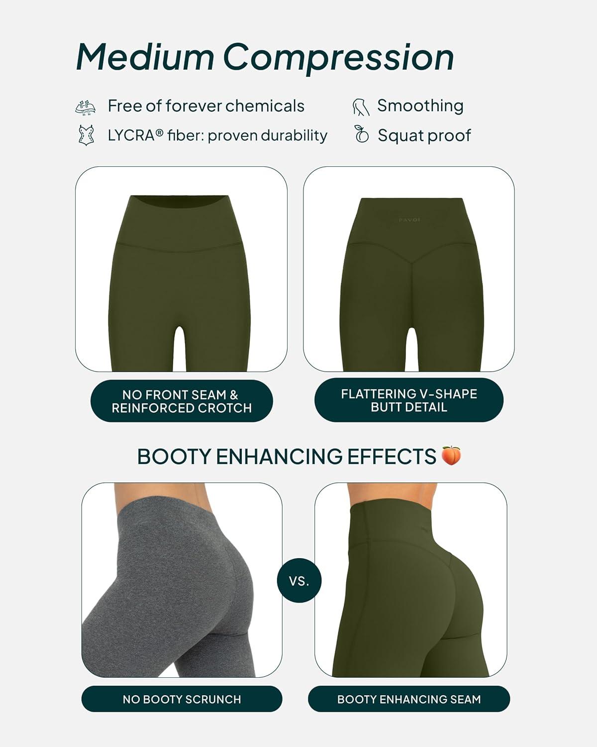 PAVOI ACTIVE Buttery Soft Workout Leggings for Women – High Waisted No Front Seam Gym Leggings Yoga Pants – FlexFlow(Army)
