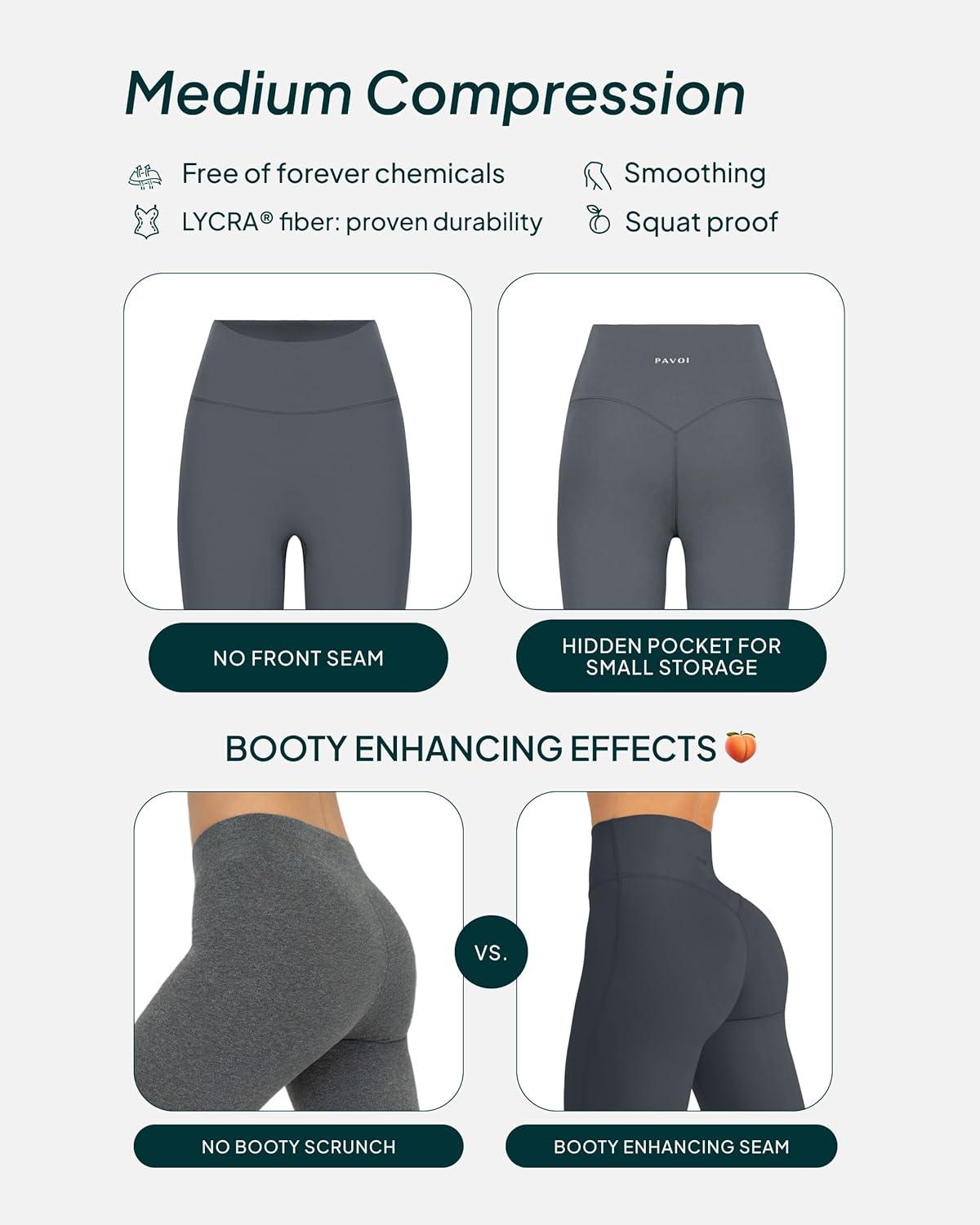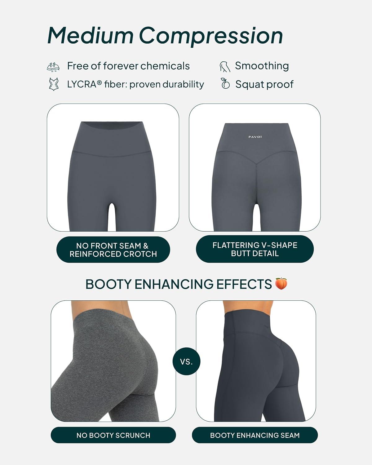PAVOI ACTIVE Buttery Soft Workout Leggings for Women – High Waisted No Front Seam Gym Leggings Yoga Pants – FlexFlow(Slate)