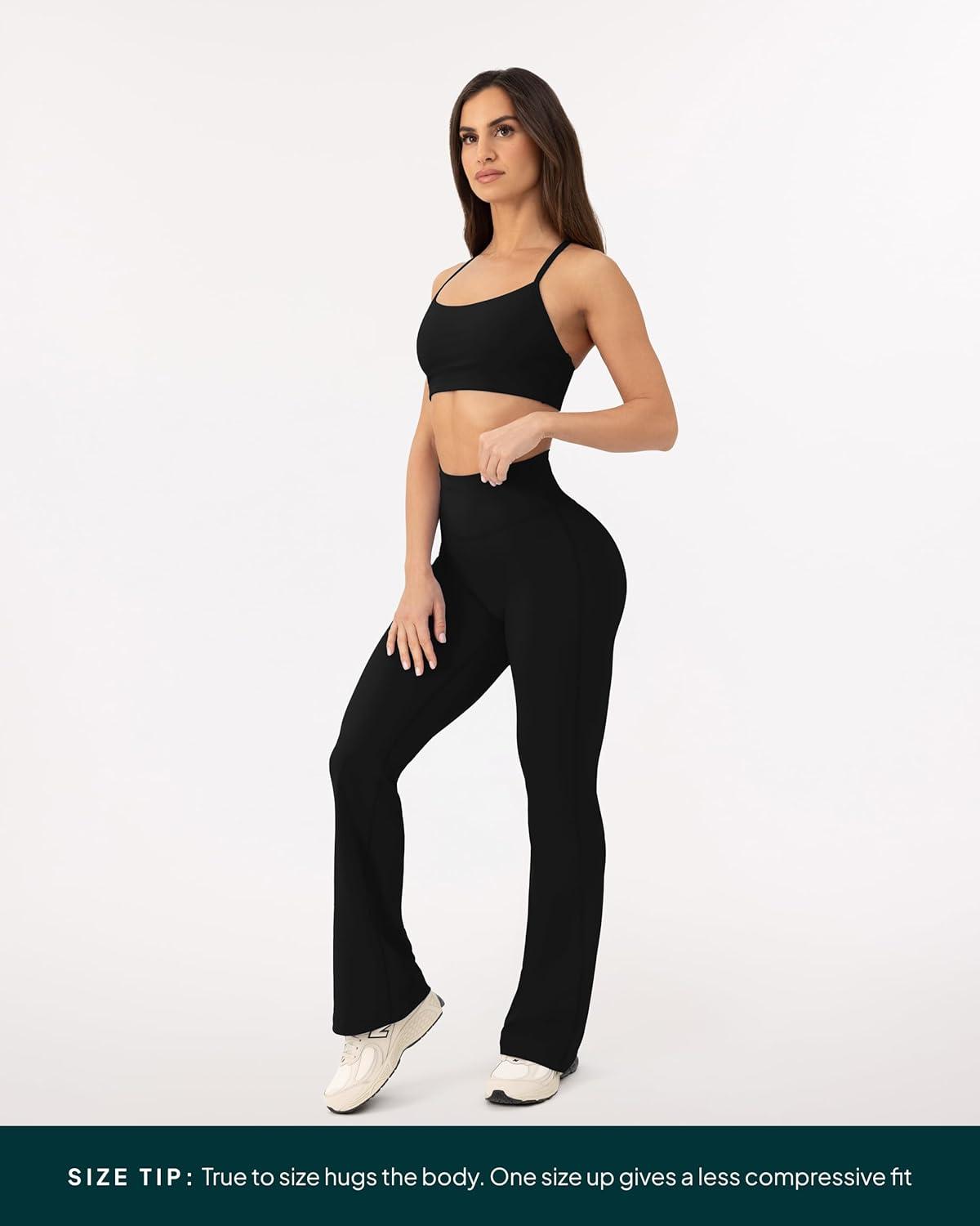 PAVOI ACTIVE High Waisted Flare Leggings for Women – Buttery Soft Bell Bottom Workout Flared Wide Leg Yoga Pants – FlexFlow(Black)