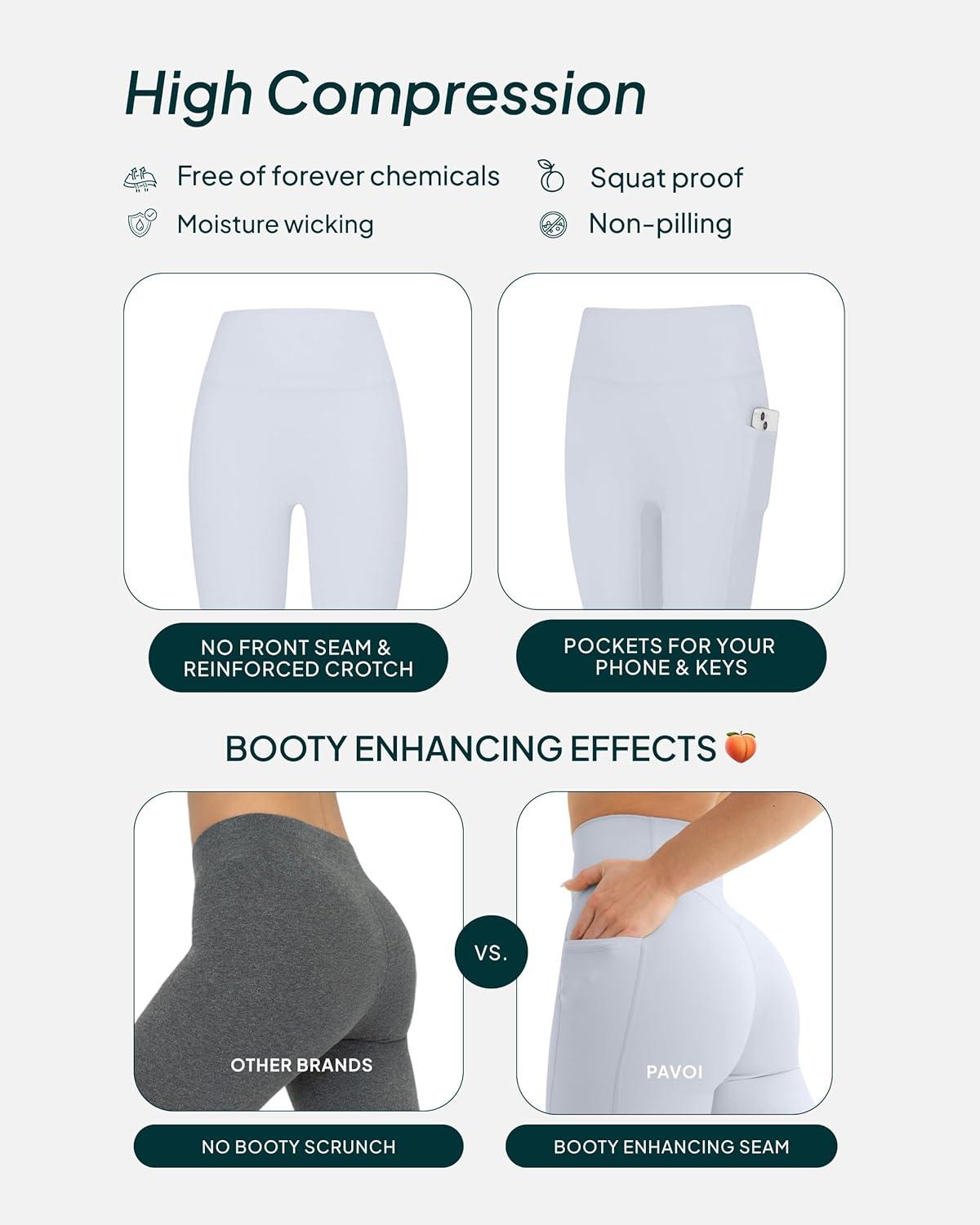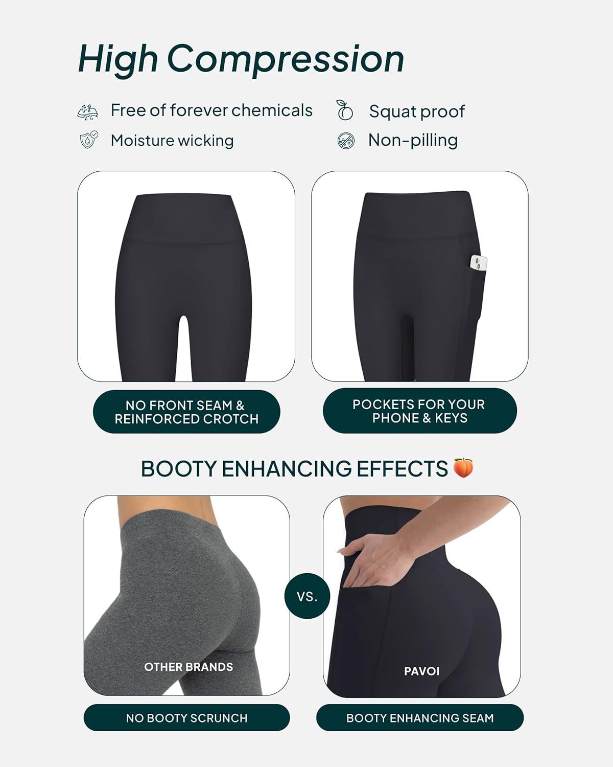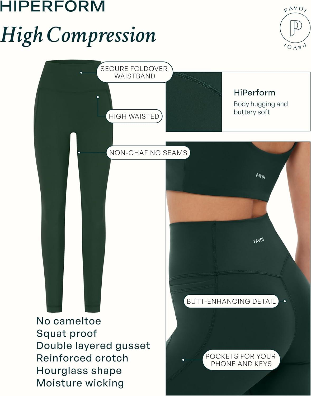 PAVOI ACTIVE Leggings with Pockets | Compressive High Waisted Butt Sculpting Women’s Full Length Workout Pants | HiPerform(Cafe)