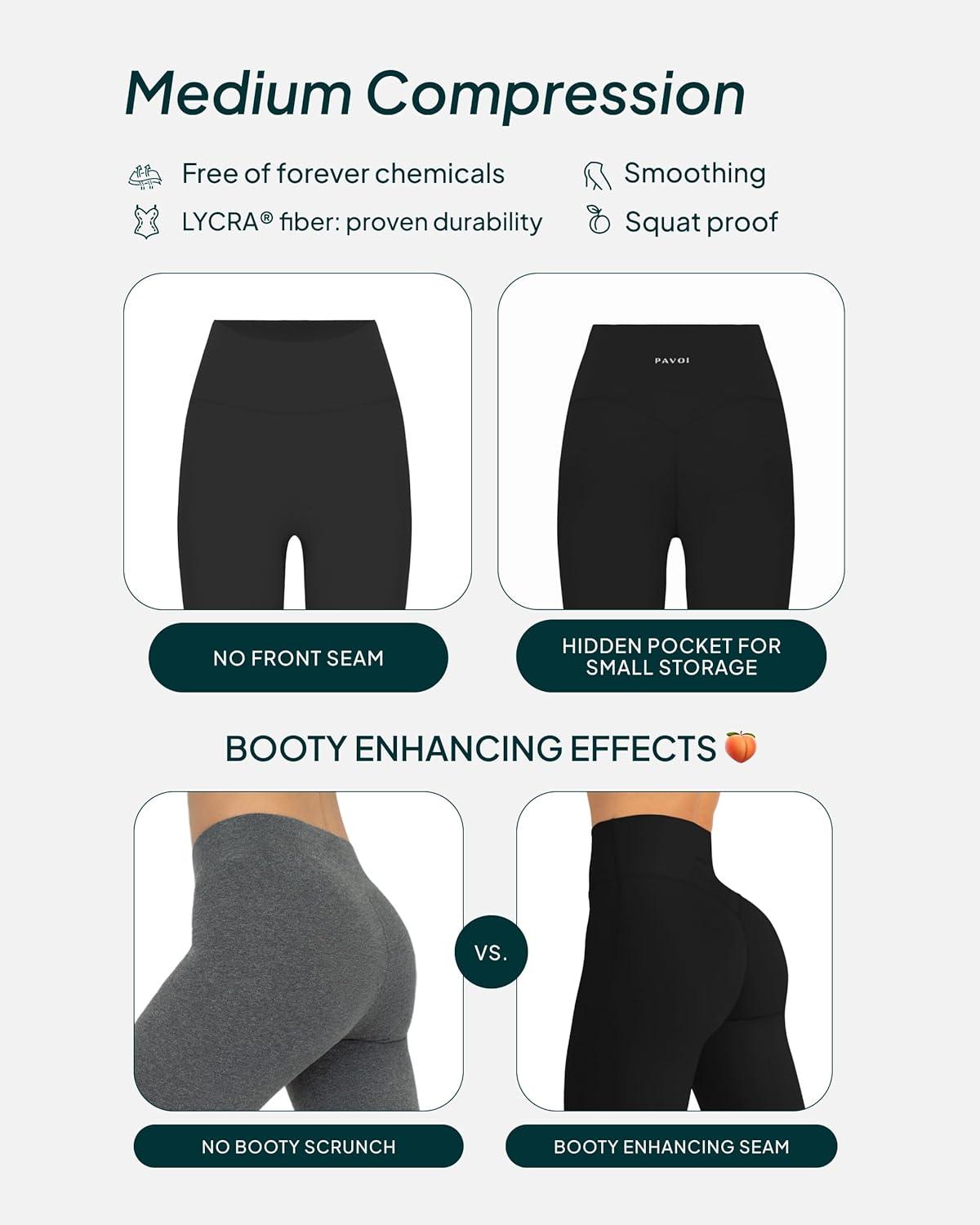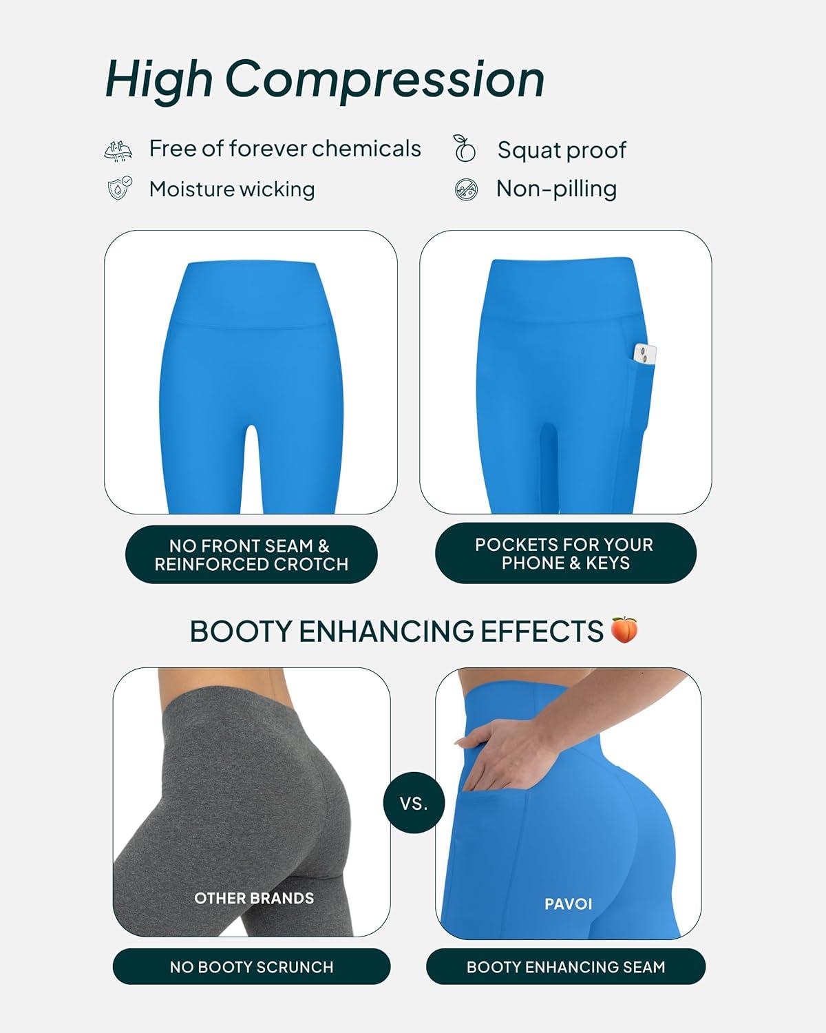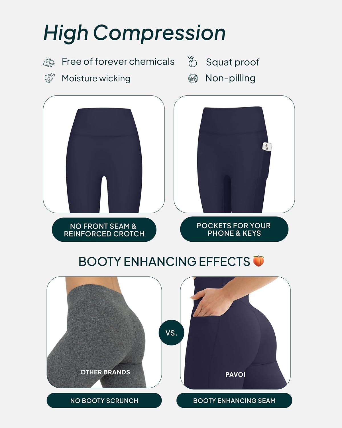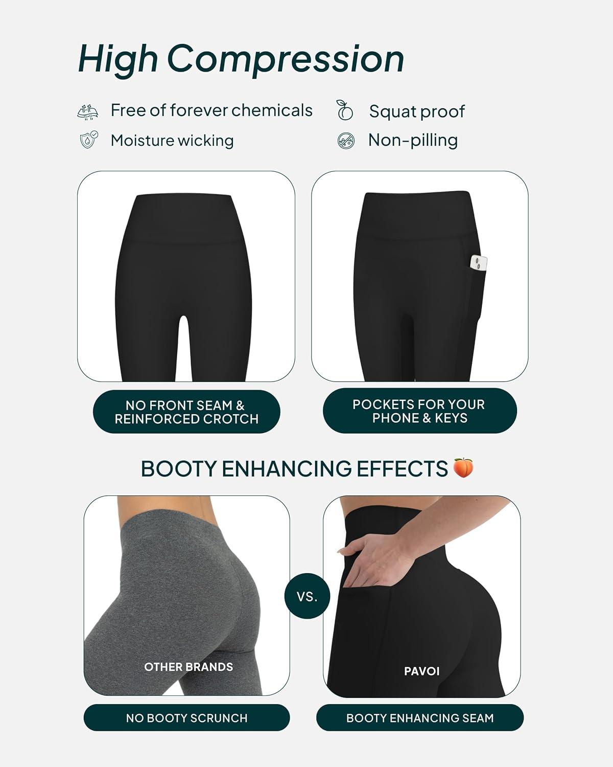PAVOI ACTIVE Leggings with Pockets | Compressive High Waisted Butt Sculpting Women’s Full Length Workout Pants | HiPerform(Cafe)