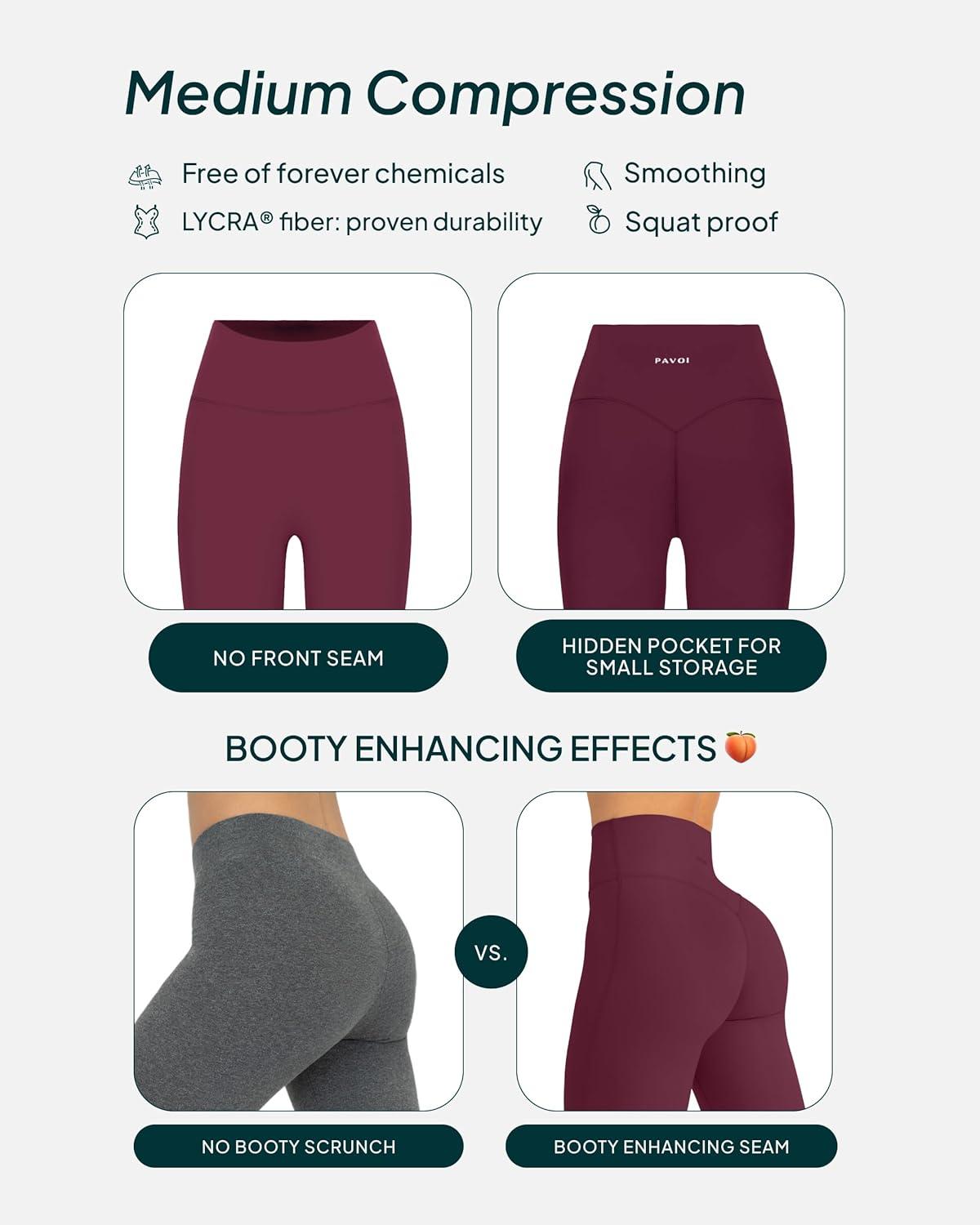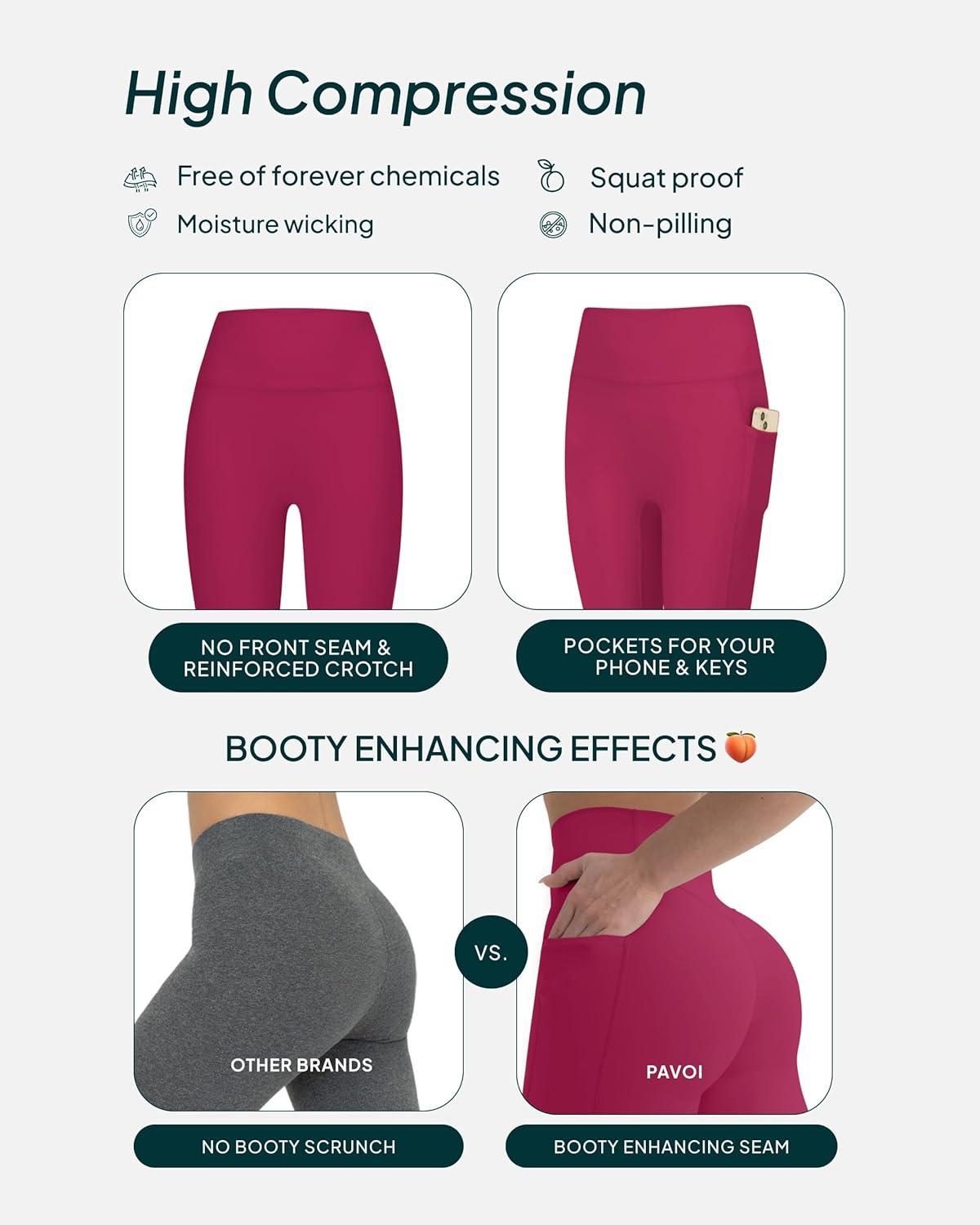 PAVOI ACTIVE Leggings with Pockets | Compressive High Waisted Butt Sculpting Women’s Full Length Workout Pants | HiPerform(Berry)