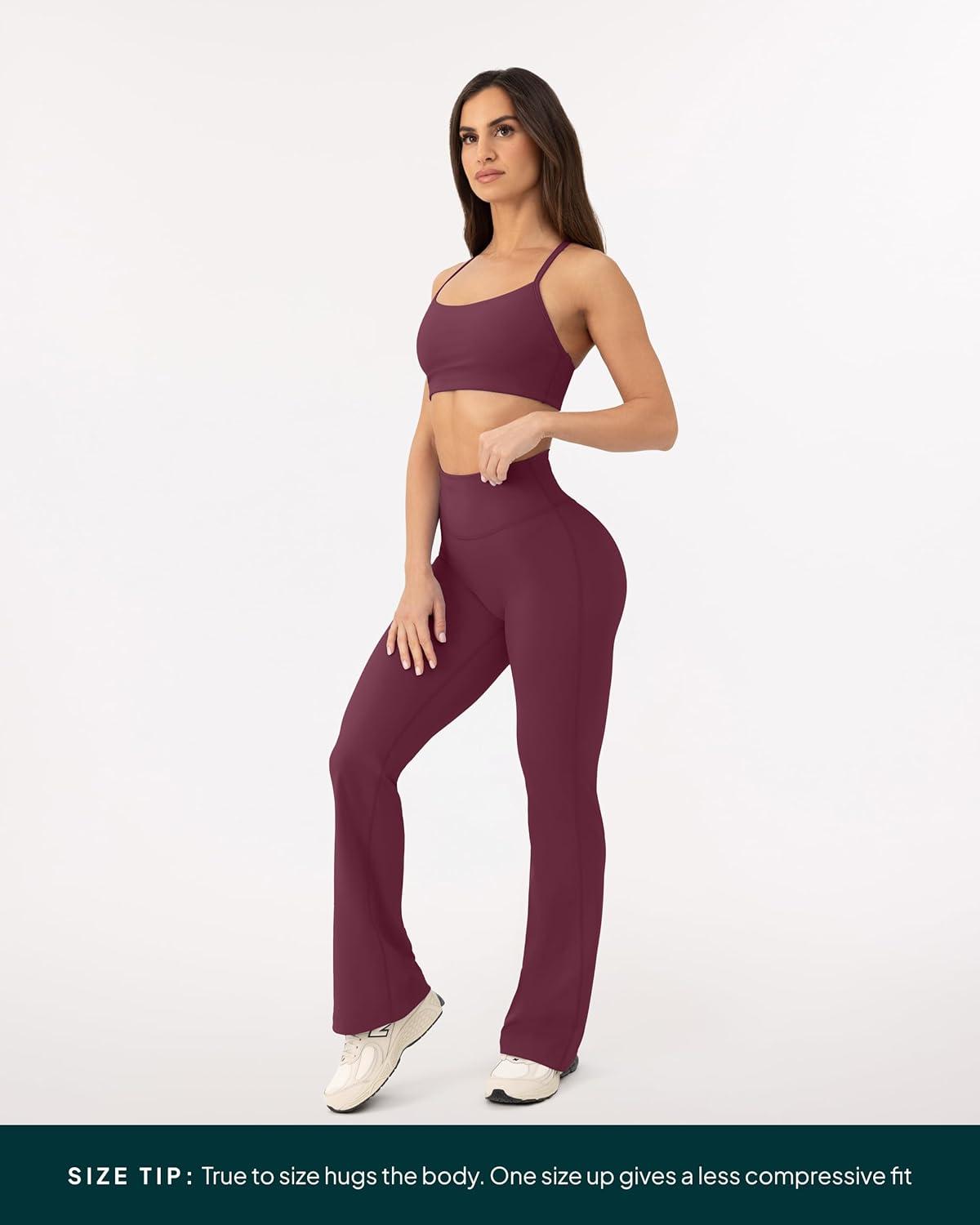 PAVOI ACTIVE High Waisted Flare Leggings for Women – Buttery Soft Bell Bottom Workout Flared Wide Leg Yoga Pants – FlexFlow(Bordeaux)