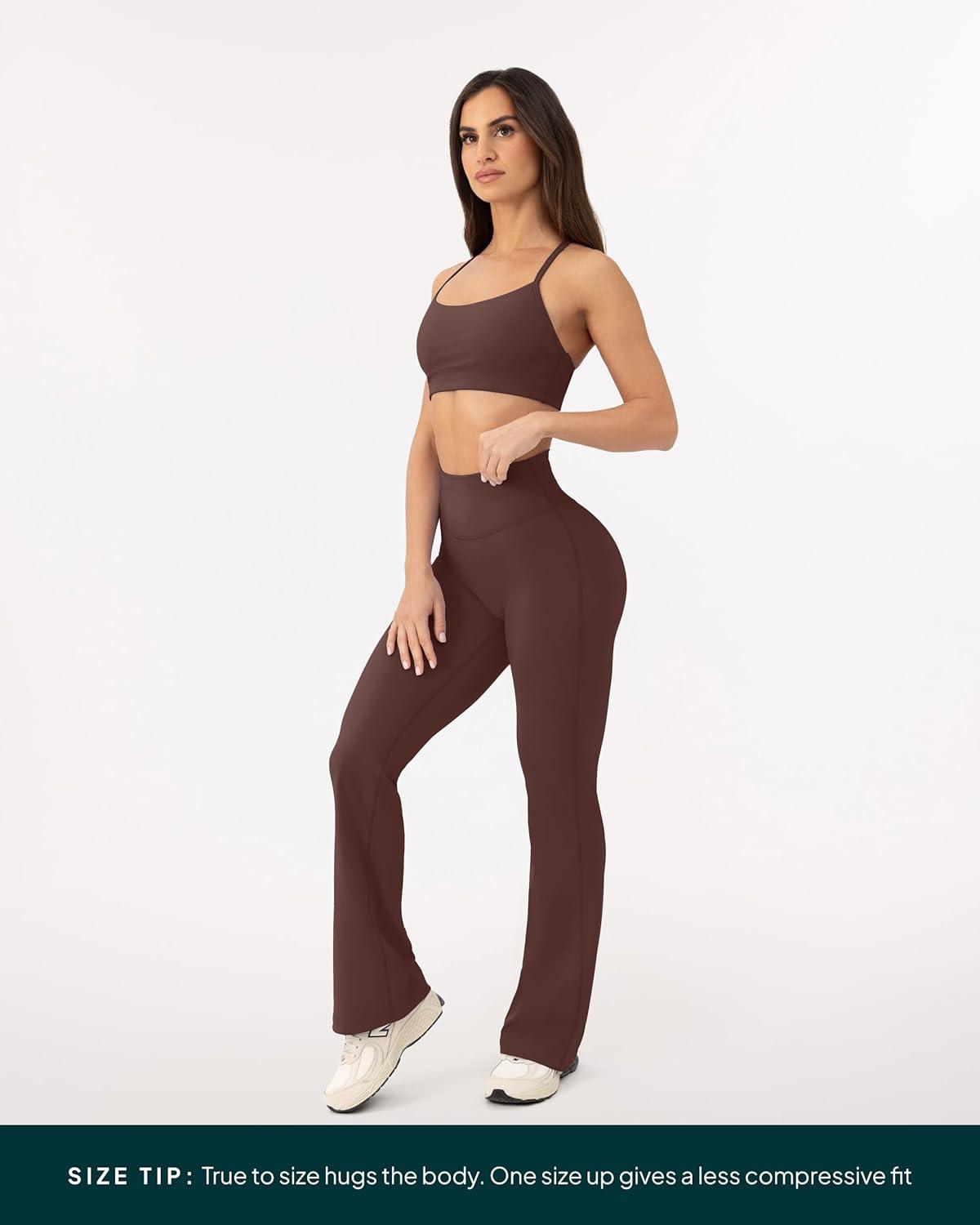 PAVOI ACTIVE High Waisted Flare Leggings for Women – Buttery Soft Bell Bottom Workout Flared Wide Leg Yoga Pants – FlexFlow(Cocoa)