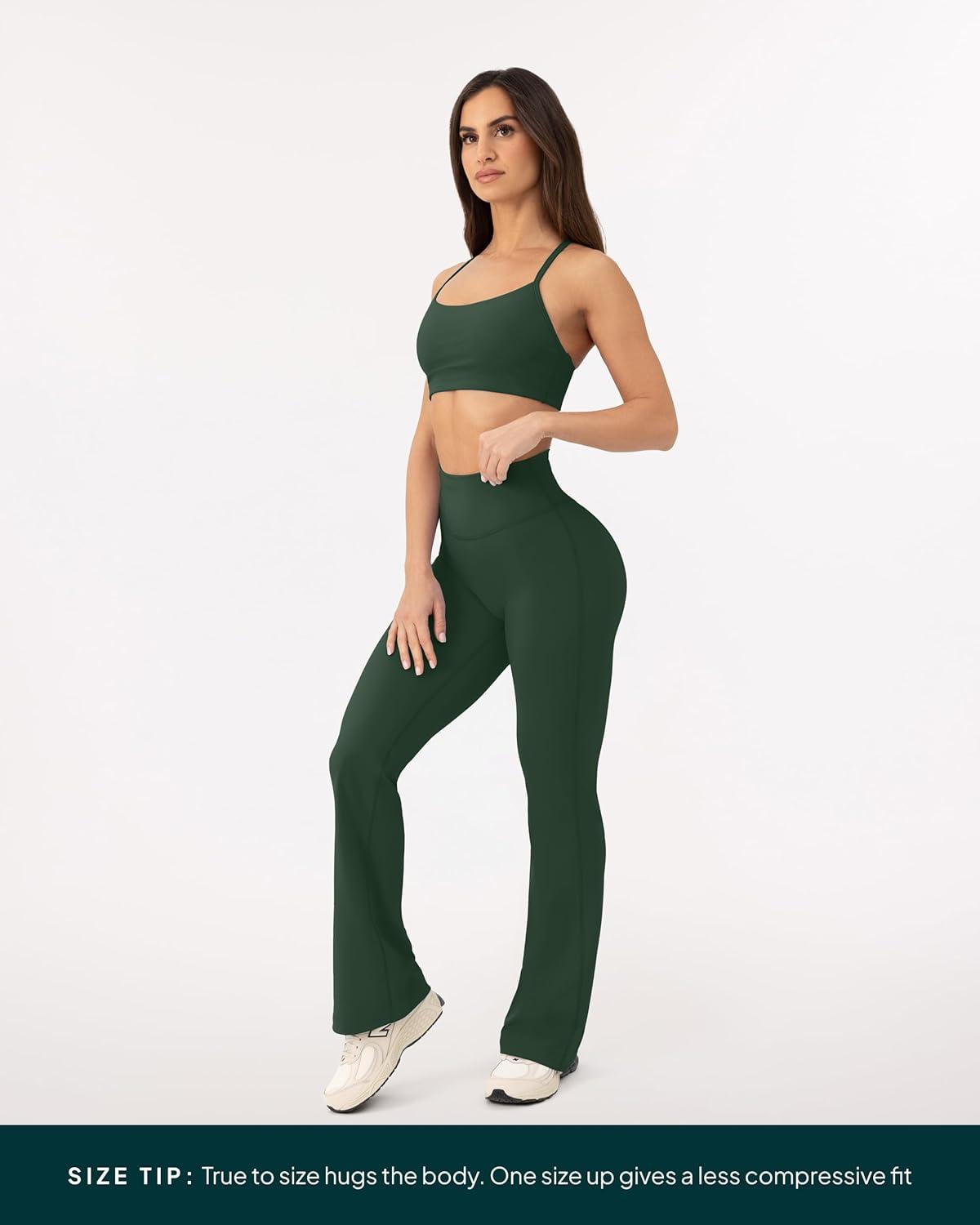 PAVOI ACTIVE High Waisted Flare Leggings for Women – Buttery Soft Bell Bottom Workout Flared Wide Leg Yoga Pants – FlexFlow(Pine Green)