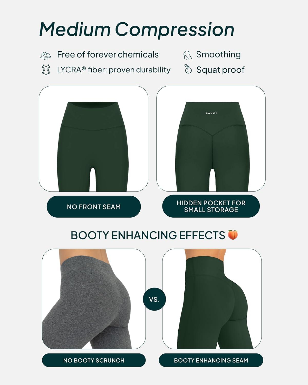 PAVOI ACTIVE Buttery Soft Workout Leggings for Women – High Waisted No Front Seam Gym Leggings Yoga Pants – FlexFlow(Pine Green)