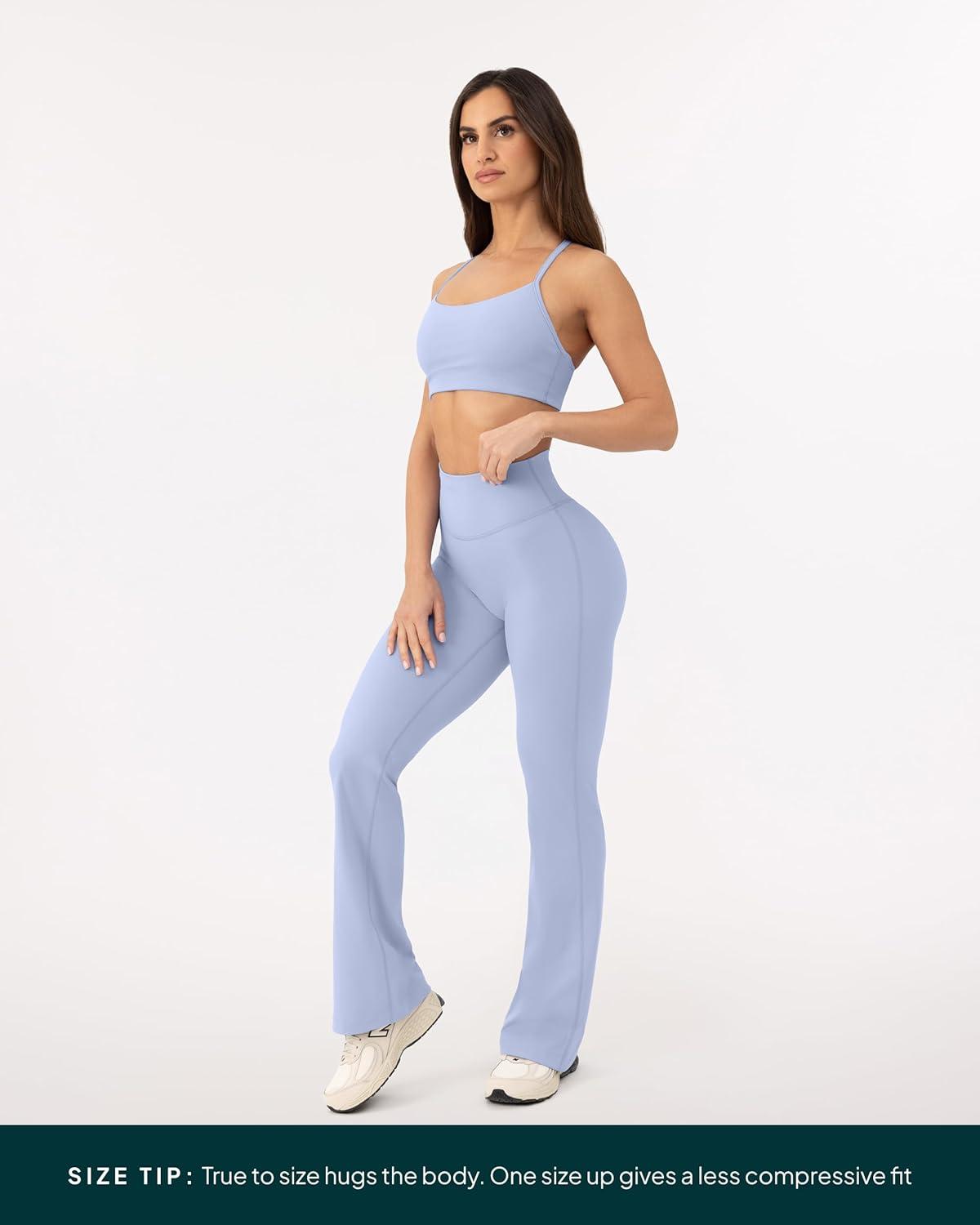 PAVOI ACTIVE High Waisted Flare Leggings for Women – Buttery Soft Bell Bottom Workout Flared Wide Leg Yoga Pants – FlexFlow(Seabreeze)