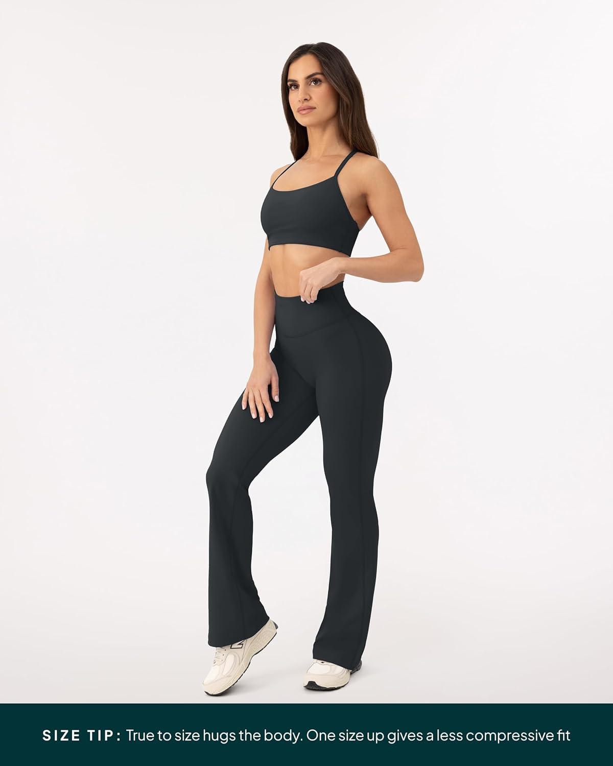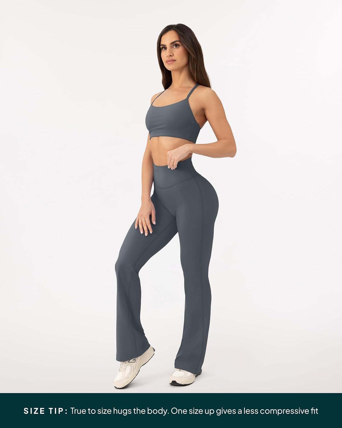 PAVOI ACTIVE High Waisted Flare Leggings for Women – Buttery Soft Bell Bottom Workout Flared Wide Leg Yoga Pants – FlexFlow(Thunder)