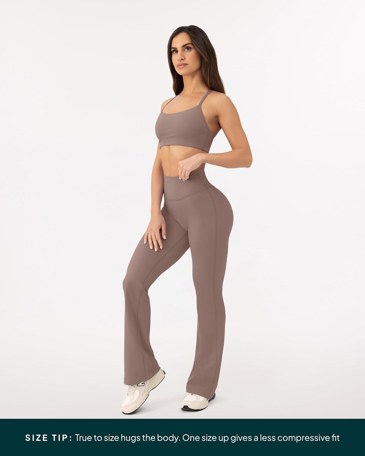 PAVOI ACTIVE High Waisted Flare Leggings for Women – Buttery Soft Bell Bottom Workout Flared Wide Leg Yoga Pants – FlexFlow(Teak)
