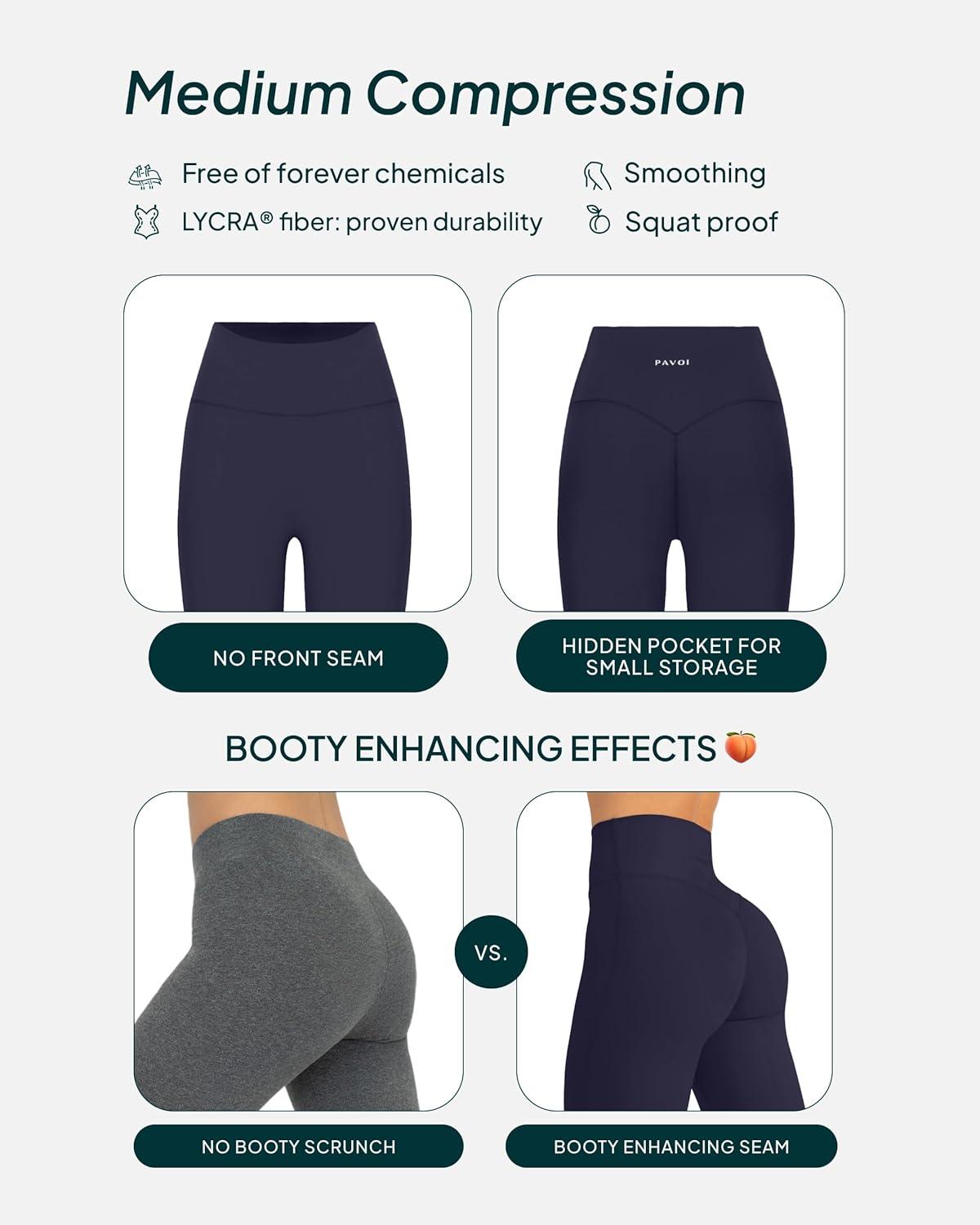 PAVOI ACTIVE Leggings with Pockets | Compressive High Waisted Butt Sculpting Women’s Full Length Workout Pants | HiPerform(Twilight)