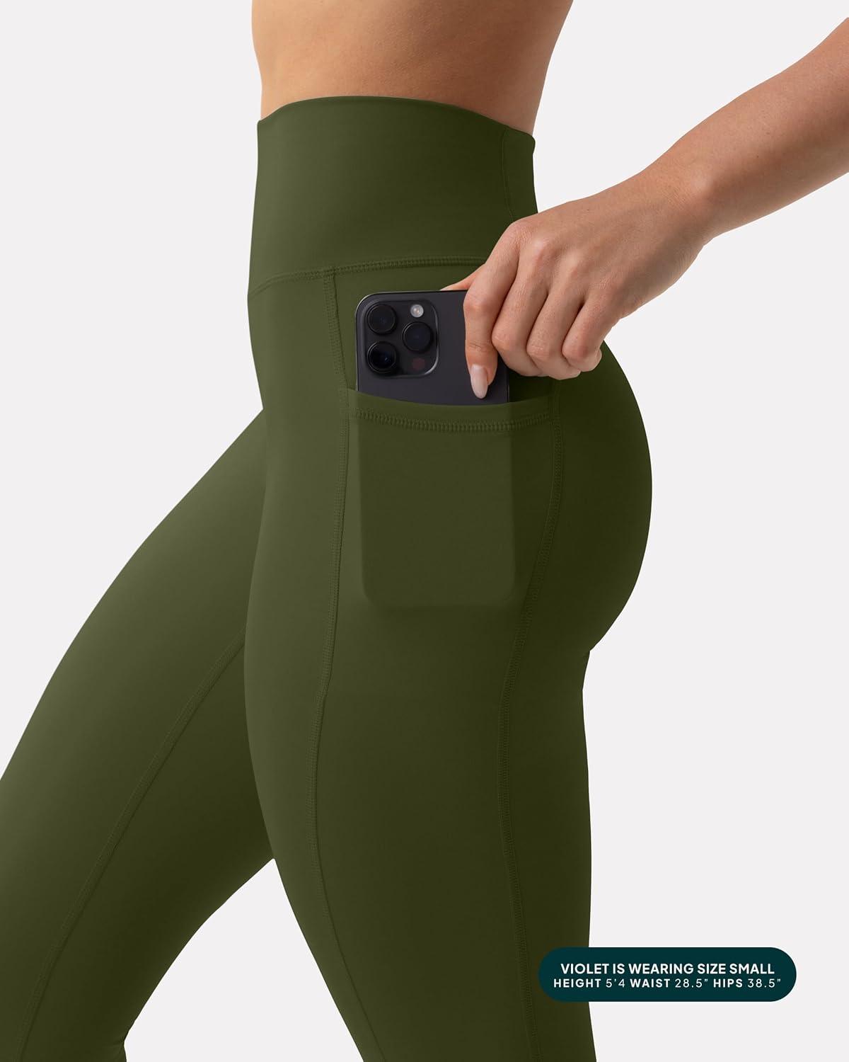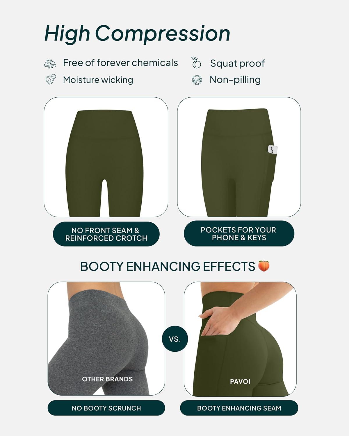 PAVOI ACTIVE Leggings with Pockets | Compressive High Waisted Butt Sculpting Women’s Full Length Workout Pants | HiPerform(Army)