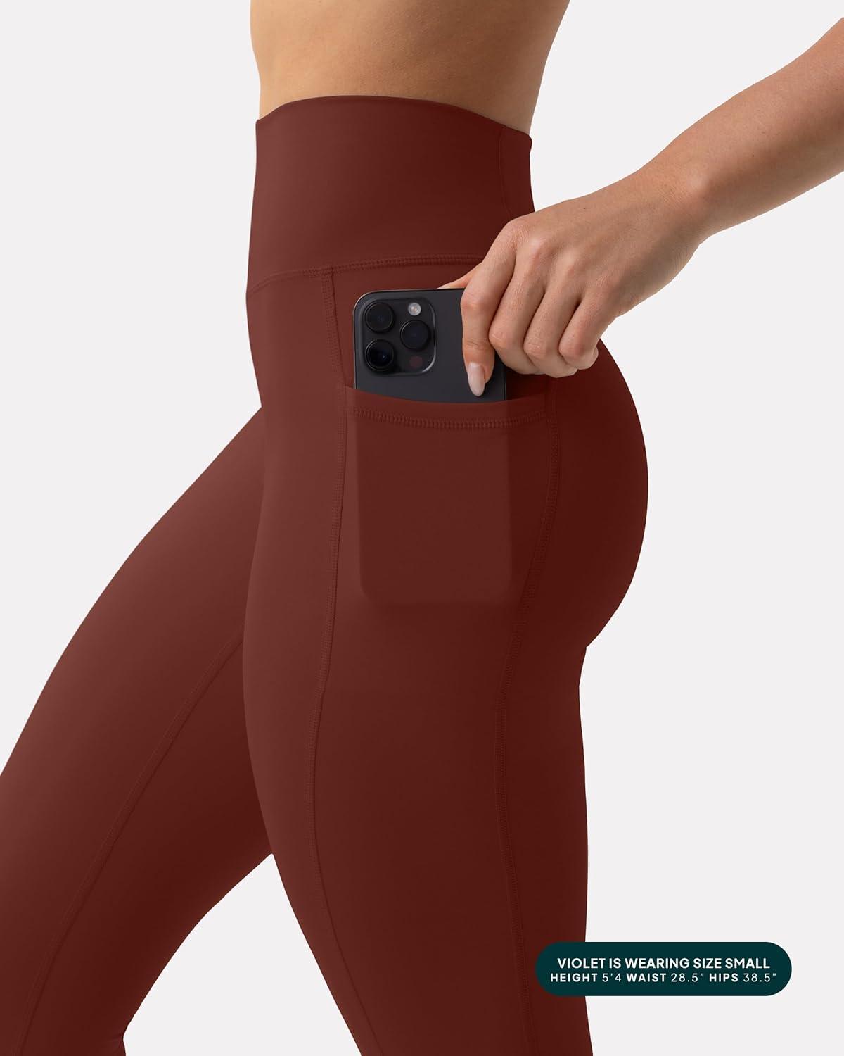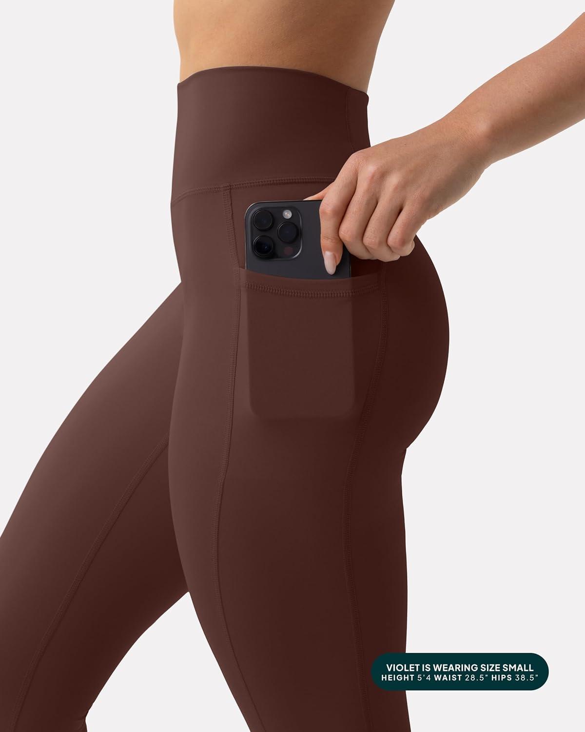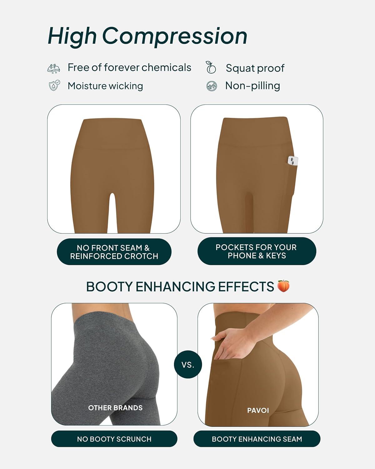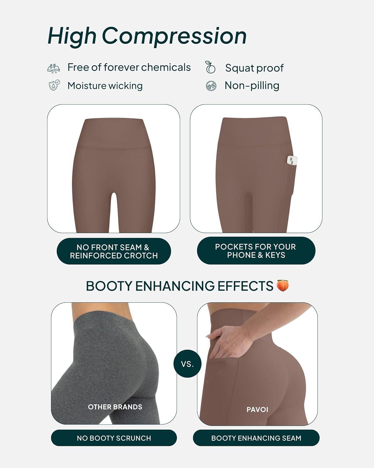 PAVOI ACTIVE Leggings with Pockets | Compressive High Waisted Butt Sculpting Women’s Full Length Workout Pants | HiPerform(Cocoa)