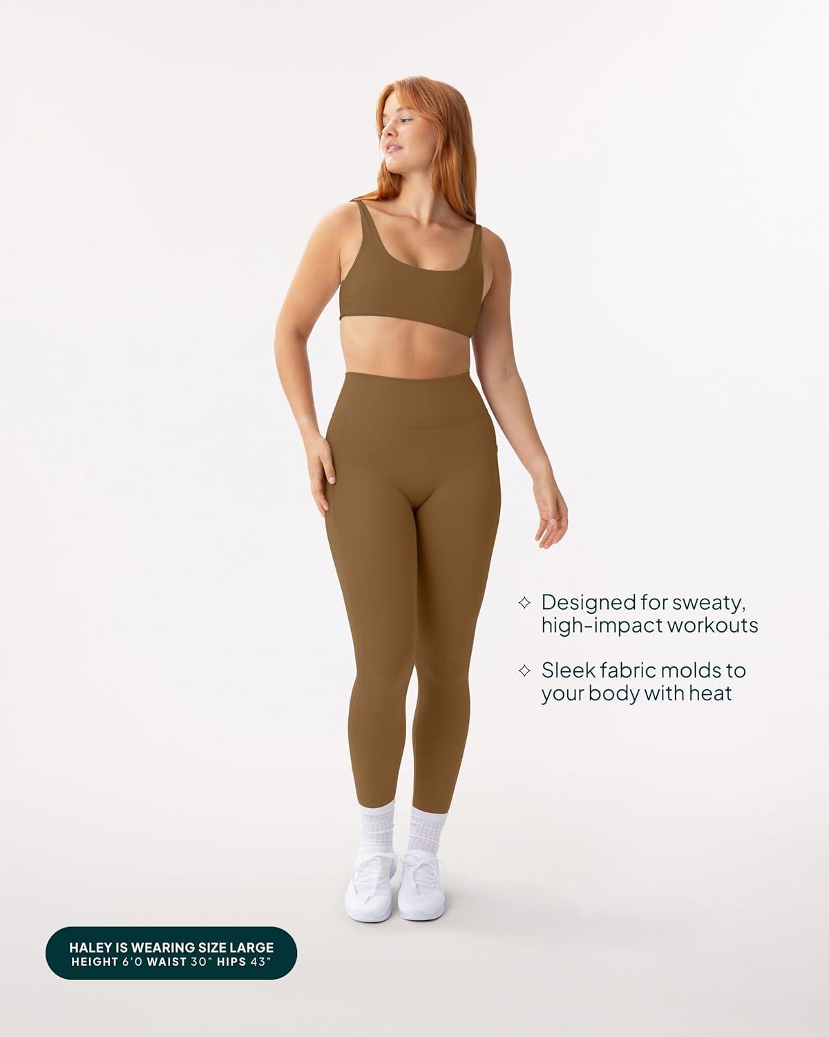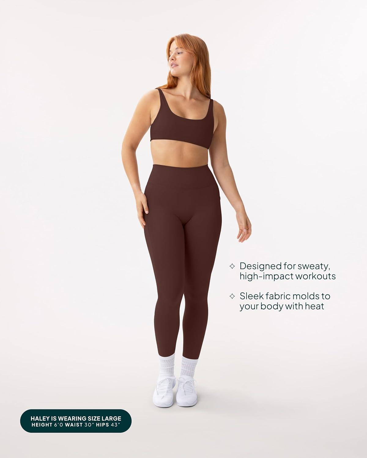 PAVOI ACTIVE Seamless Scrunch Butt Leggings | High Waisted Compression Sculpting Women Full Length Workout Pants | SculptForm(Brown)