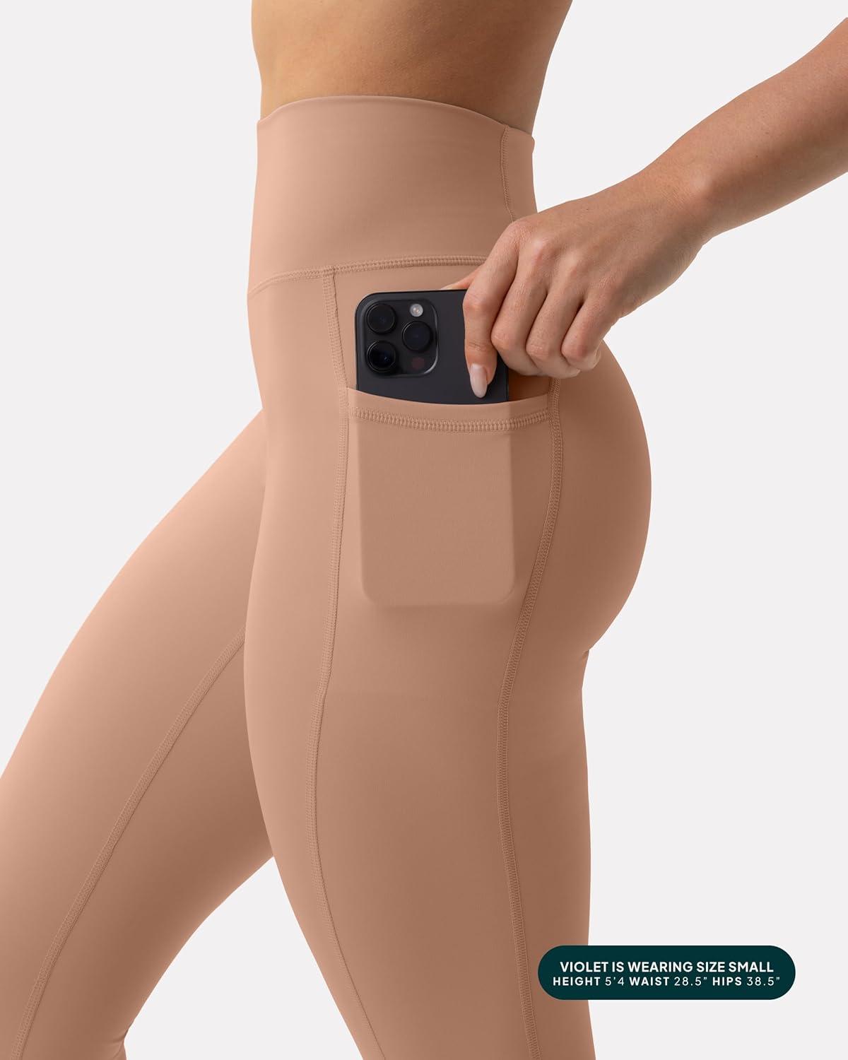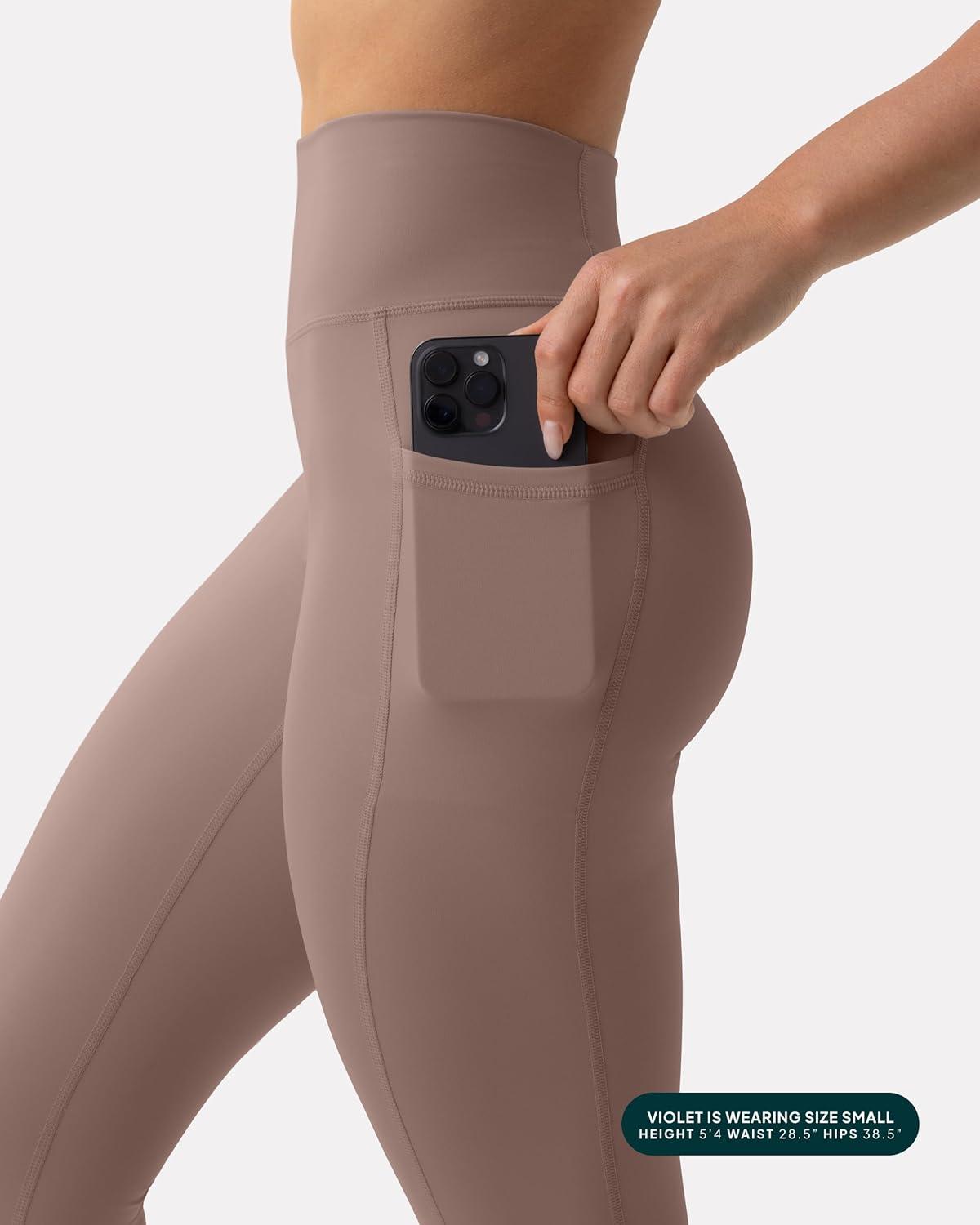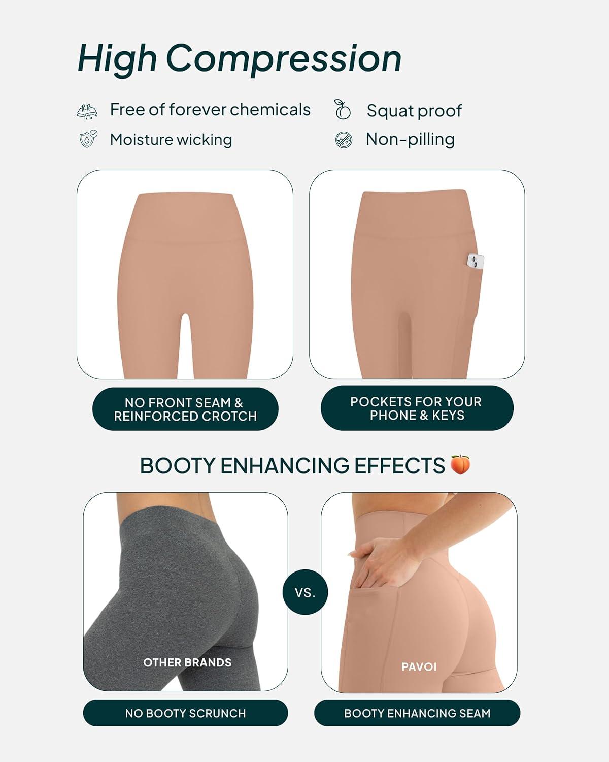 PAVOI ACTIVE Leggings with Pockets | Compressive High Waisted Butt Sculpting Women’s Full Length Workout Pants | HiPerform(Clay)