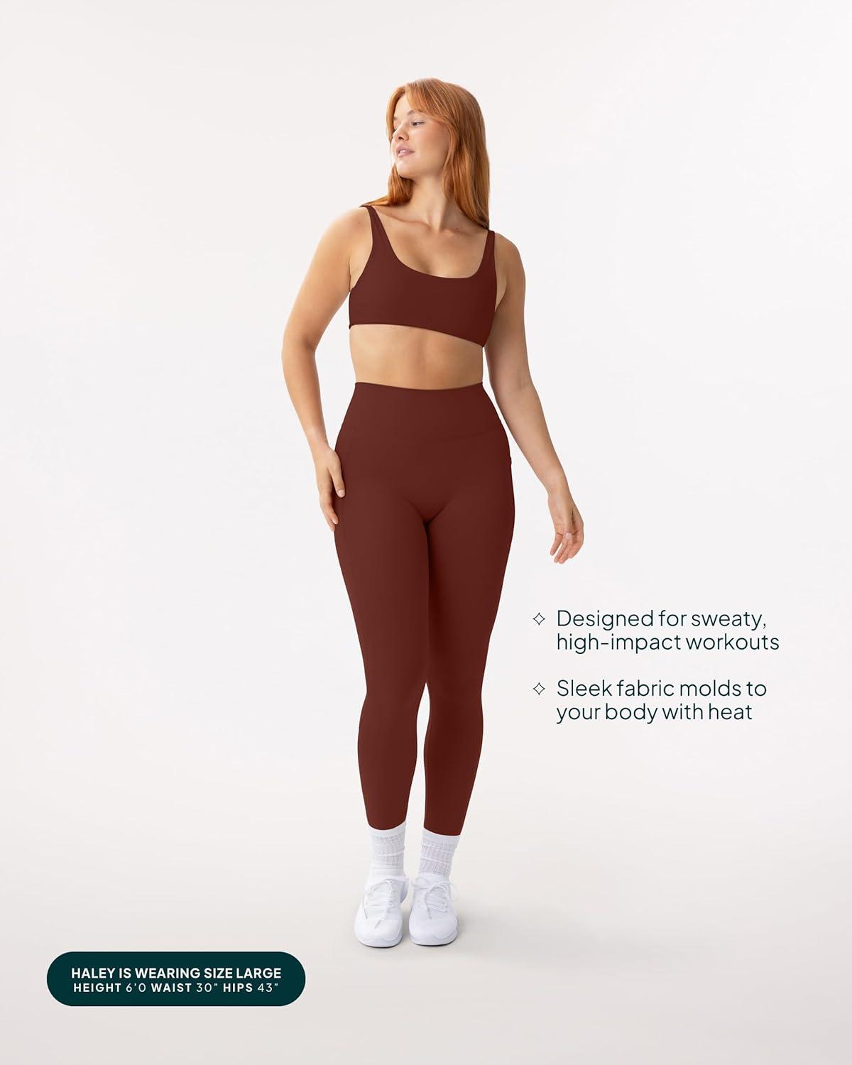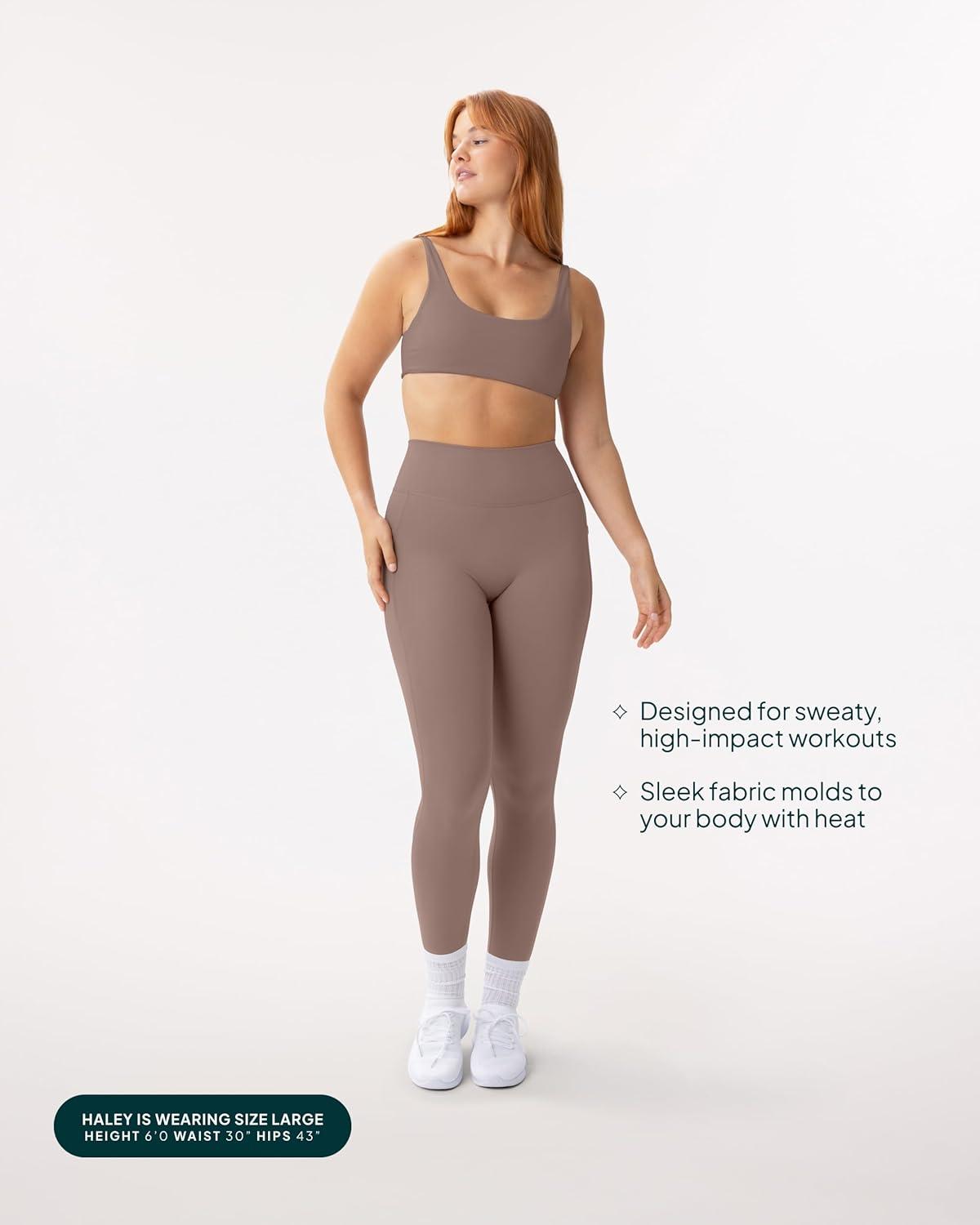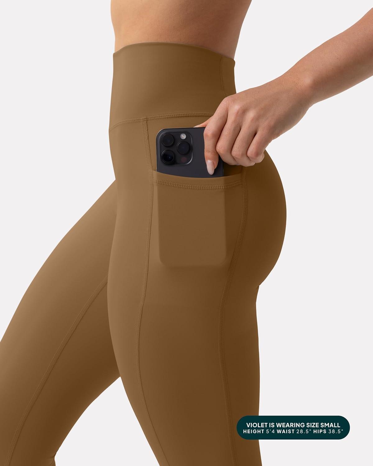 PAVOI ACTIVE Leggings with Pockets | Compressive High Waisted Butt Sculpting Women’s Full Length Workout Pants | HiPerform(Clay)