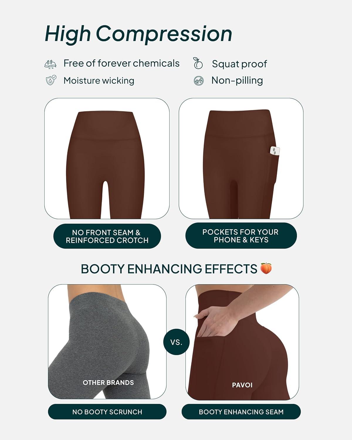 PAVOI ACTIVE Leggings with Pockets | Compressive High Waisted Butt Sculpting Women’s Full Length Workout Pants | HiPerform(Chocolate)