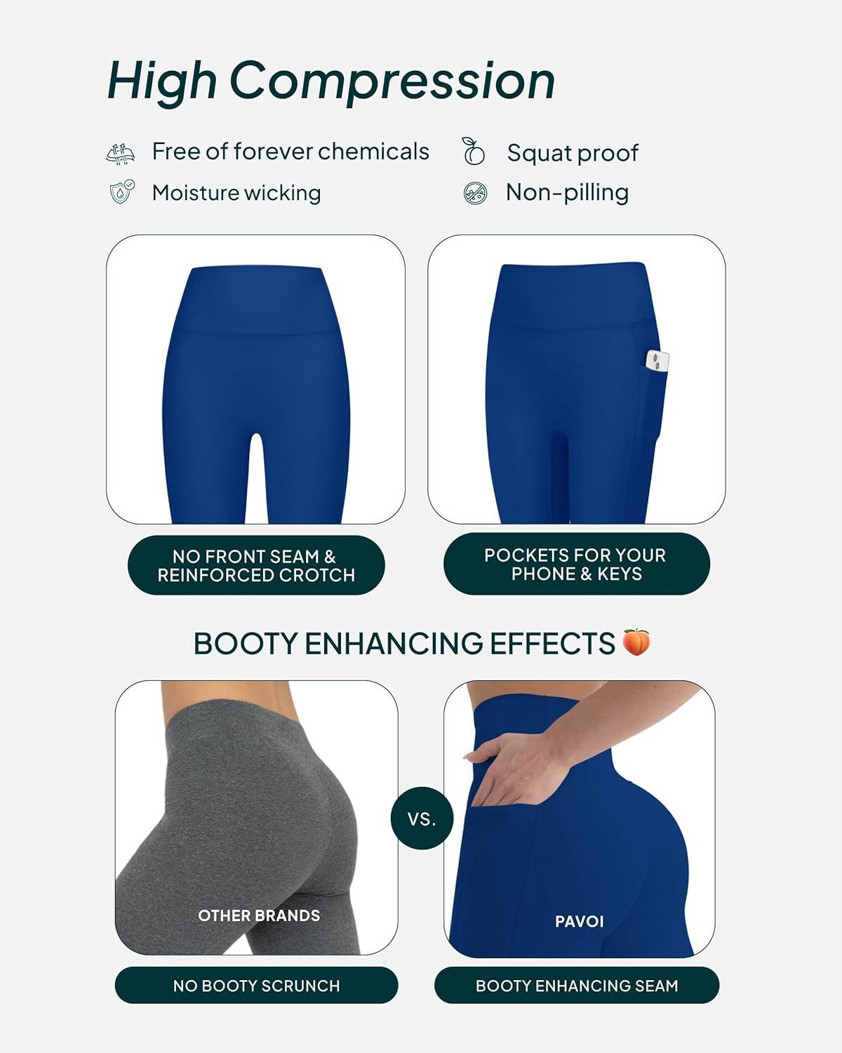 PAVOI ACTIVE Leggings with Pockets | Compressive High Waisted Butt Sculpting Women’s Full Length Workout Pants | HiPerform(Royal Blue)