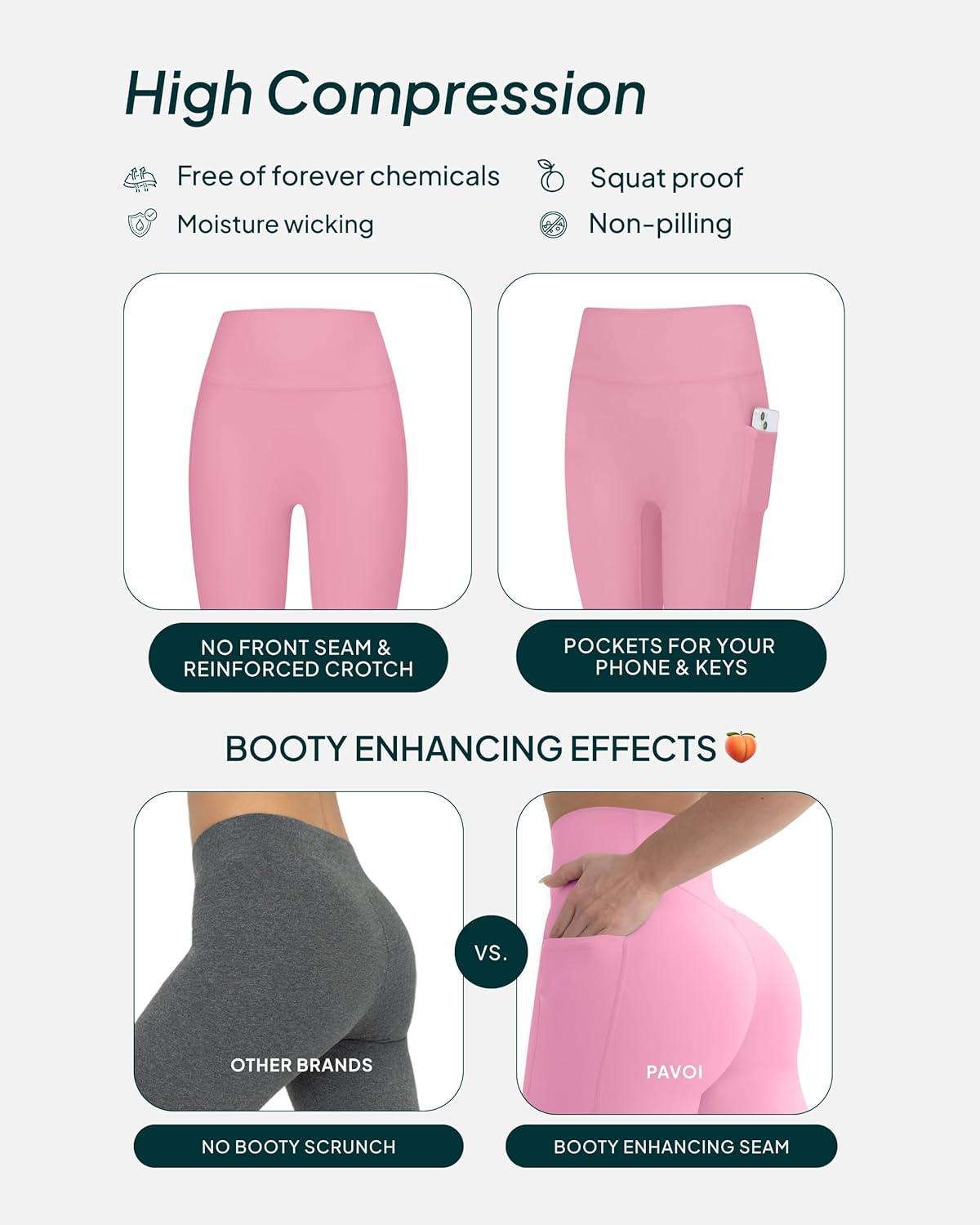 PAVOI ACTIVE Leggings with Pockets | Compressive High Waisted Butt Sculpting Women’s Full Length Workout Pants | HiPerform(Petal)