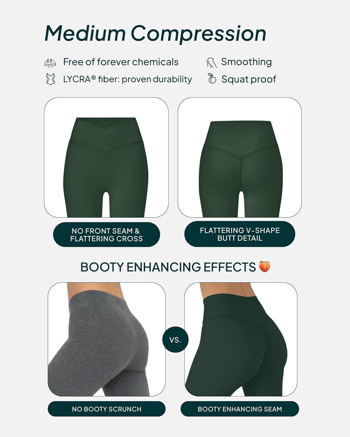 PAVOI ACTIVE Pilates Crossover Leggings for Women | Buttery Soft High Waisted V Cut Cross Waist Workout Yoga Pants | FlexFlow(Pine Green)