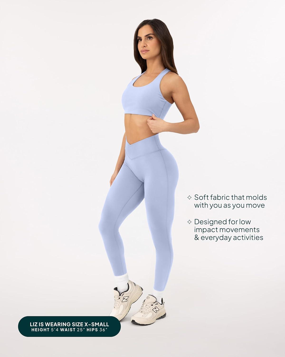 PAVOI ACTIVE Pilates Crossover Leggings for Women | Buttery Soft High Waisted V Cut Cross Waist Workout Yoga Pants | FlexFlow(Seabreeze)