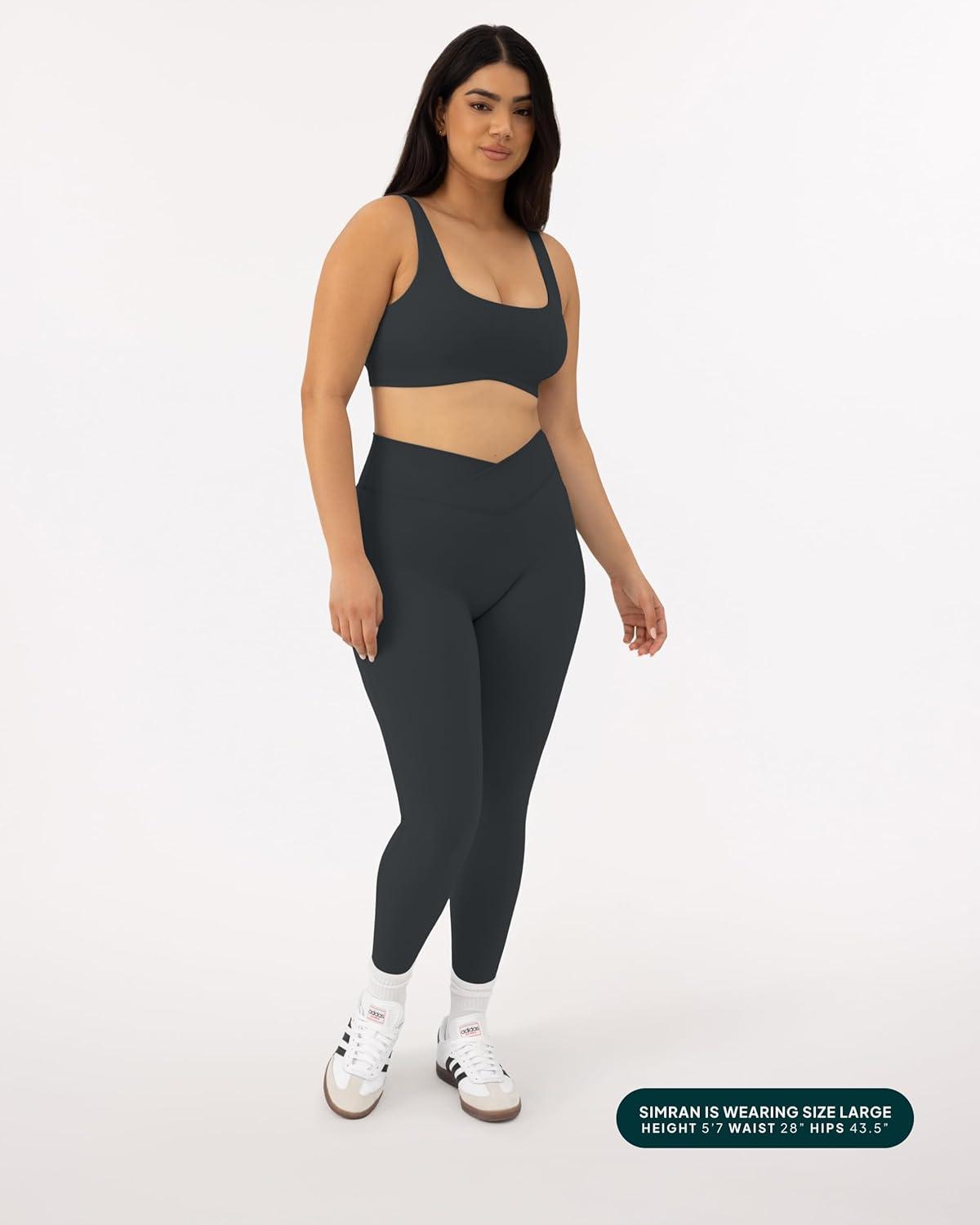 PAVOI ACTIVE Pilates Crossover Leggings for Women | Buttery Soft High Waisted V Cut Cross Waist Workout Yoga Pants | FlexFlow(Thunder)