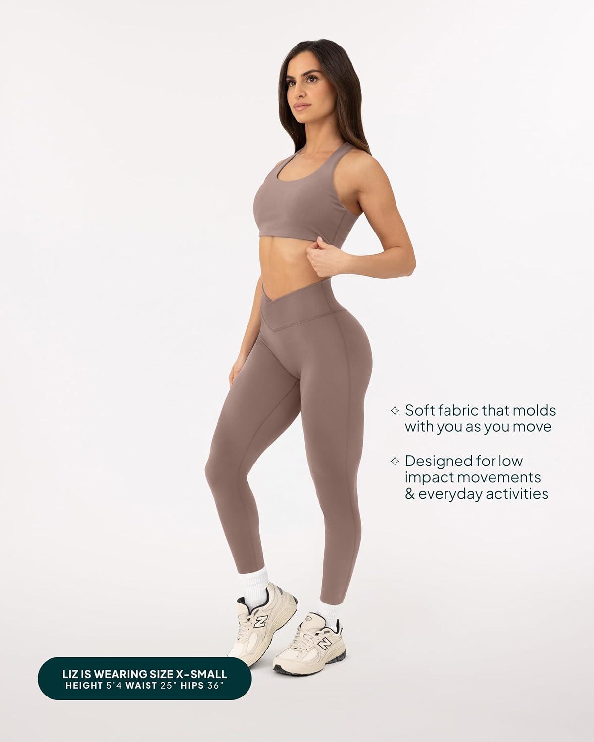 PAVOI ACTIVE Pilates Crossover Leggings for Women | Buttery Soft High Waisted V Cut Cross Waist Workout Yoga Pants | FlexFlow(Teak)