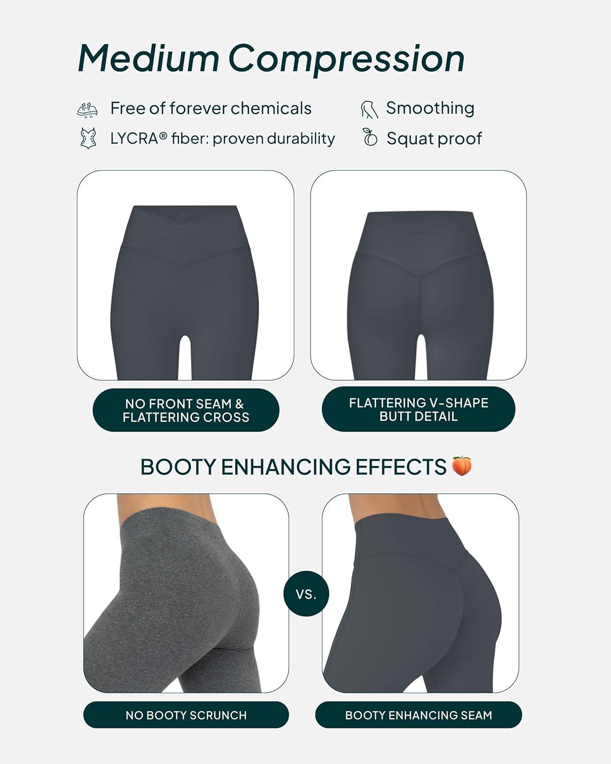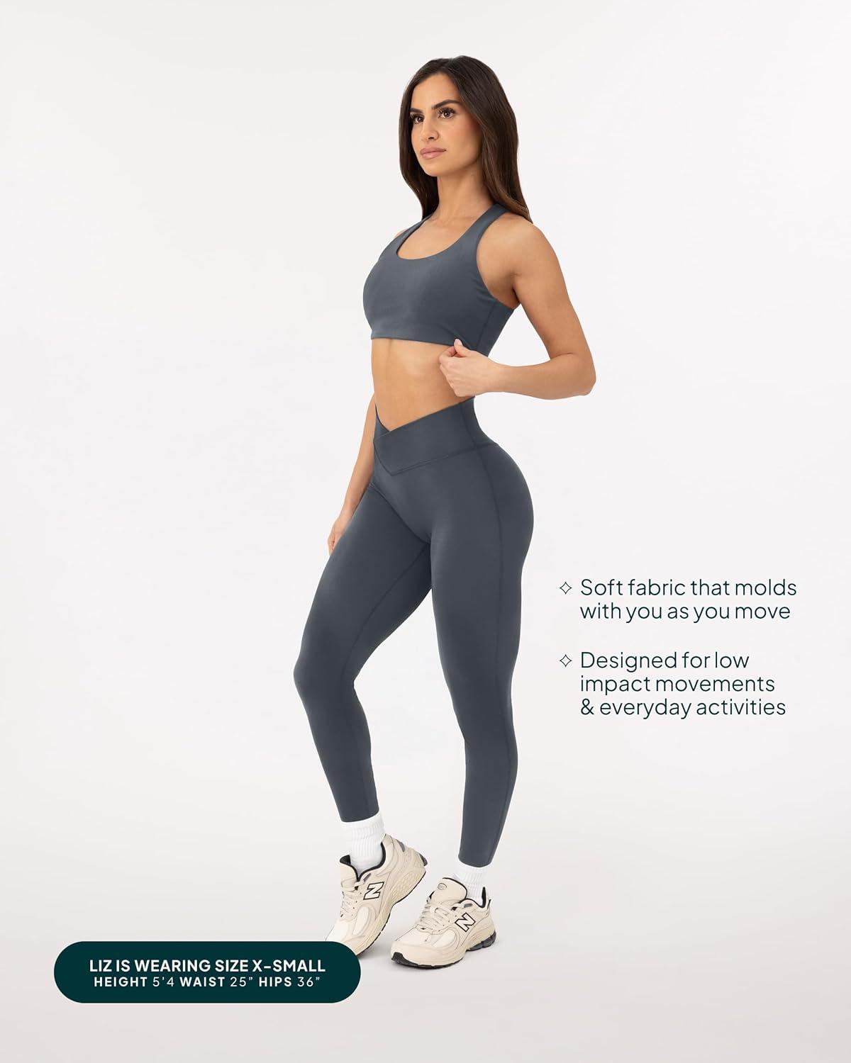 PAVOI ACTIVE Pilates Crossover Leggings for Women | Buttery Soft High Waisted V Cut Cross Waist Workout Yoga Pants | FlexFlow(Slate)