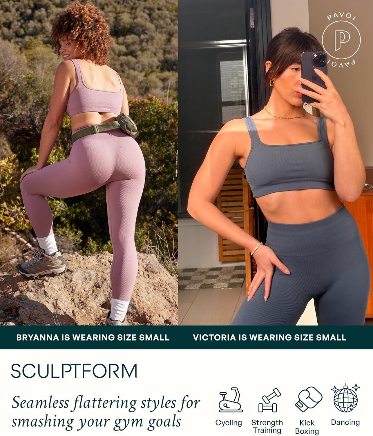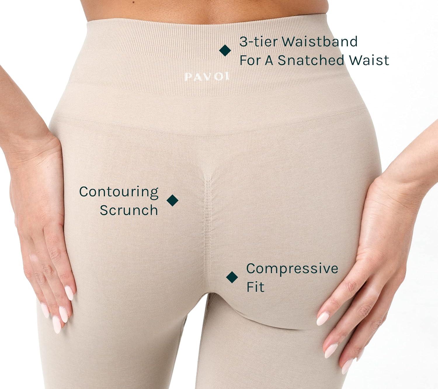 PAVOI ACTIVE Seamless Scrunch Butt Leggings | High Waisted Compression Sculpting Women Full Length Workout Pants | SculptForm(Black)