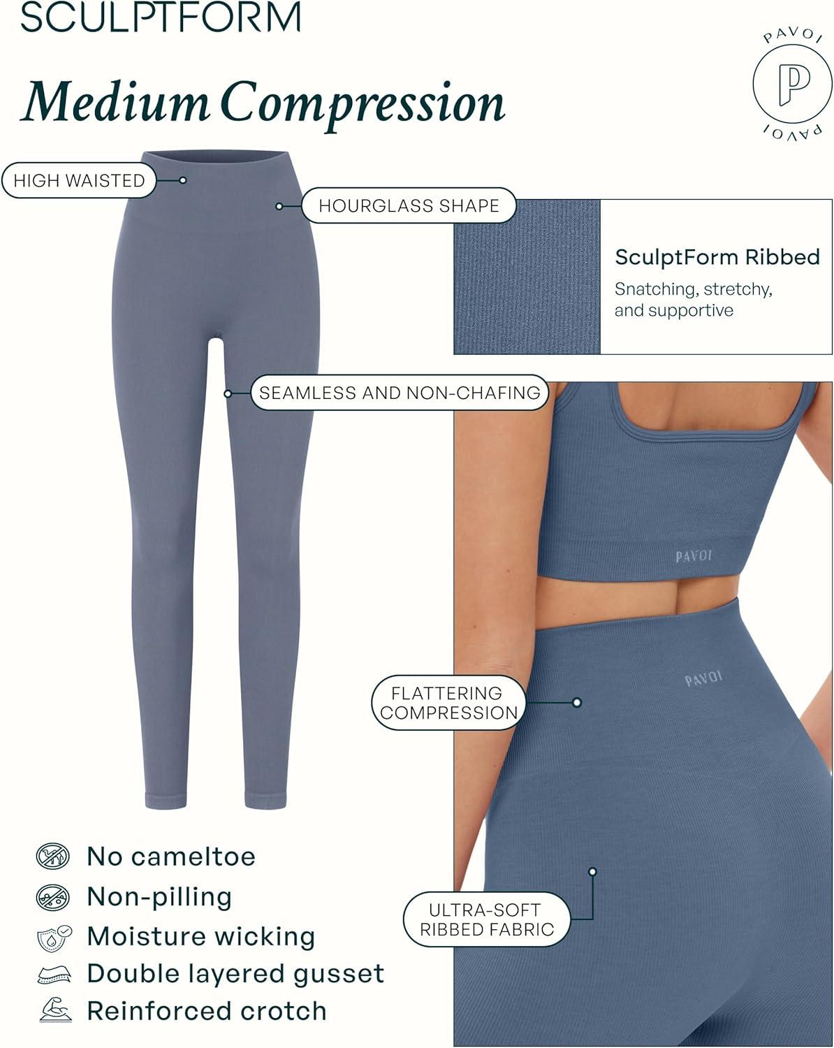 PAVOI ACTIVE Seamless Scrunch Butt Leggings | High Waisted Compression Sculpting Women Full Length Workout Pants | SculptForm(Greyish Blue)