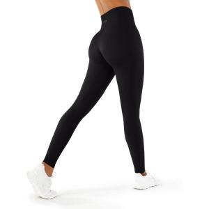 PAVOI ACTIVE Pilates Crossover Leggings for Women | Buttery Soft High Waisted V Cut Cross Waist Workout Yoga Pants | FlexFlow(Black)