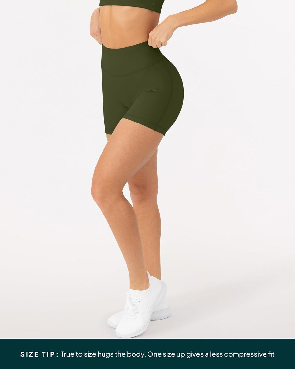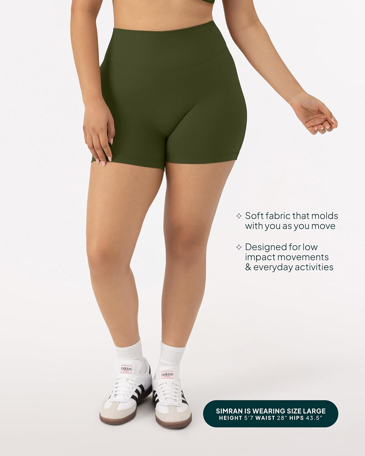 PAVOI ACTIVE Yoga Shorts for Women High Waisted Gym Shorts Buttery Soft Biker Workout Shorts 4″ & 6″ Compression Fit(Army)