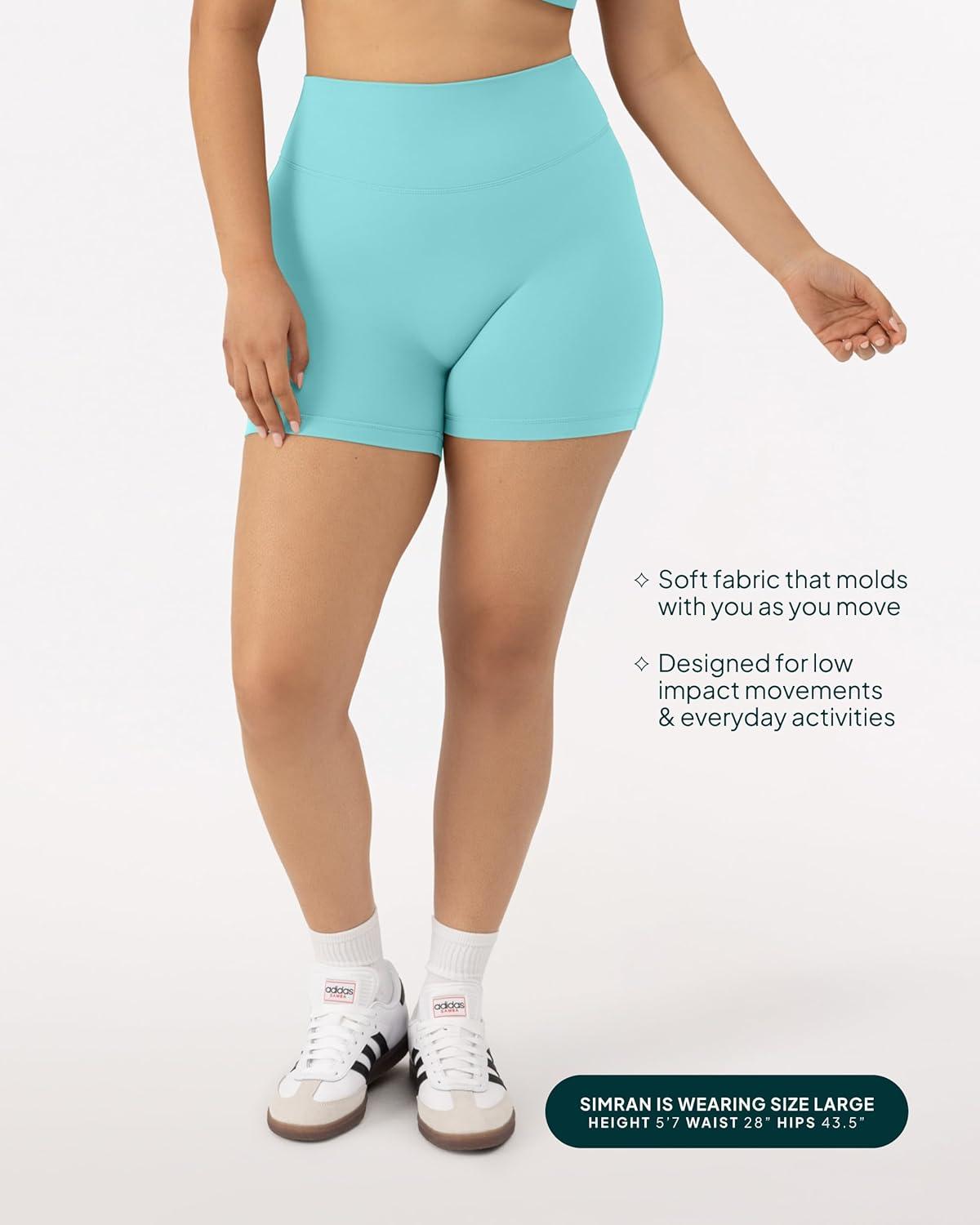 PAVOI ACTIVE Yoga Shorts for Women High Waisted Gym Shorts Buttery Soft Biker Workout Shorts 4″ & 6″ Compression Fit(Seabreeze)