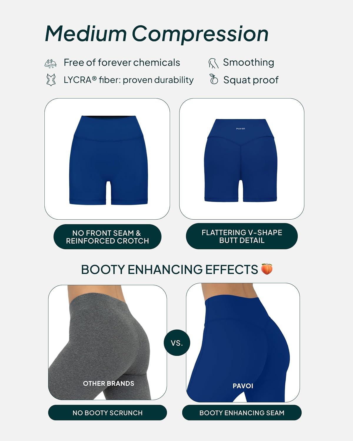 PAVOI ACTIVE Shorts with Pockets | Compressive High Waisted Butt Sculpting 4″ & 6″ Women’s Biker Shorts | HiPerform XXS to 3X(Indigo)