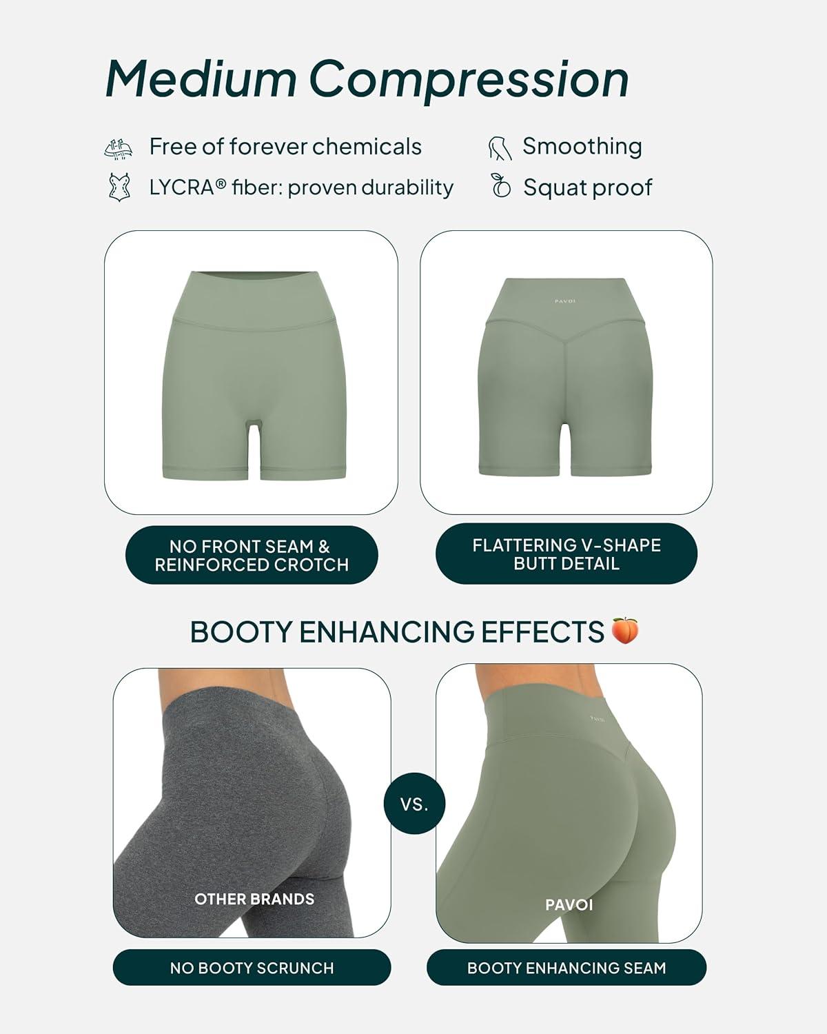 PAVOI ACTIVE Shorts with Pockets | Compressive High Waisted Butt Sculpting 4″ & 6″ Women’s Biker Shorts | HiPerform XXS to 3X(Moss)