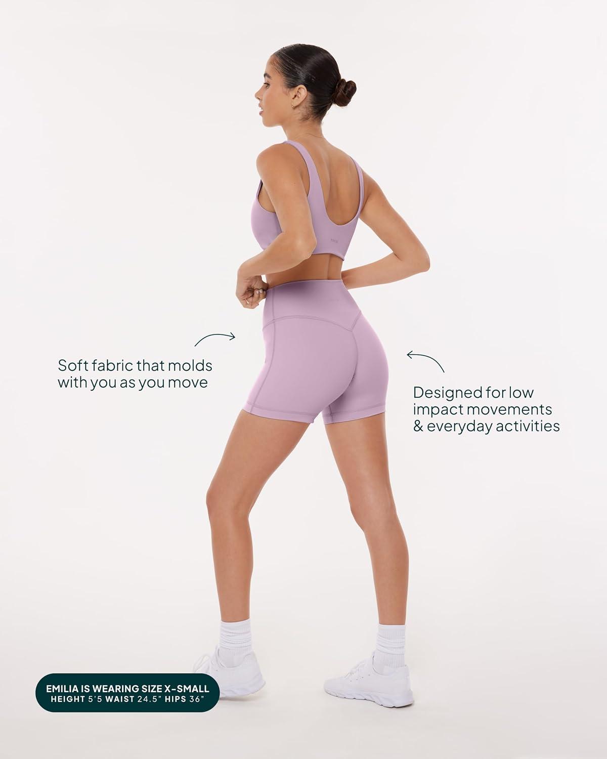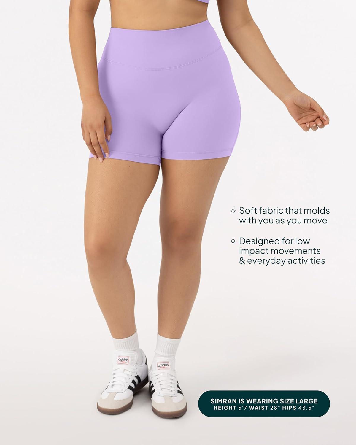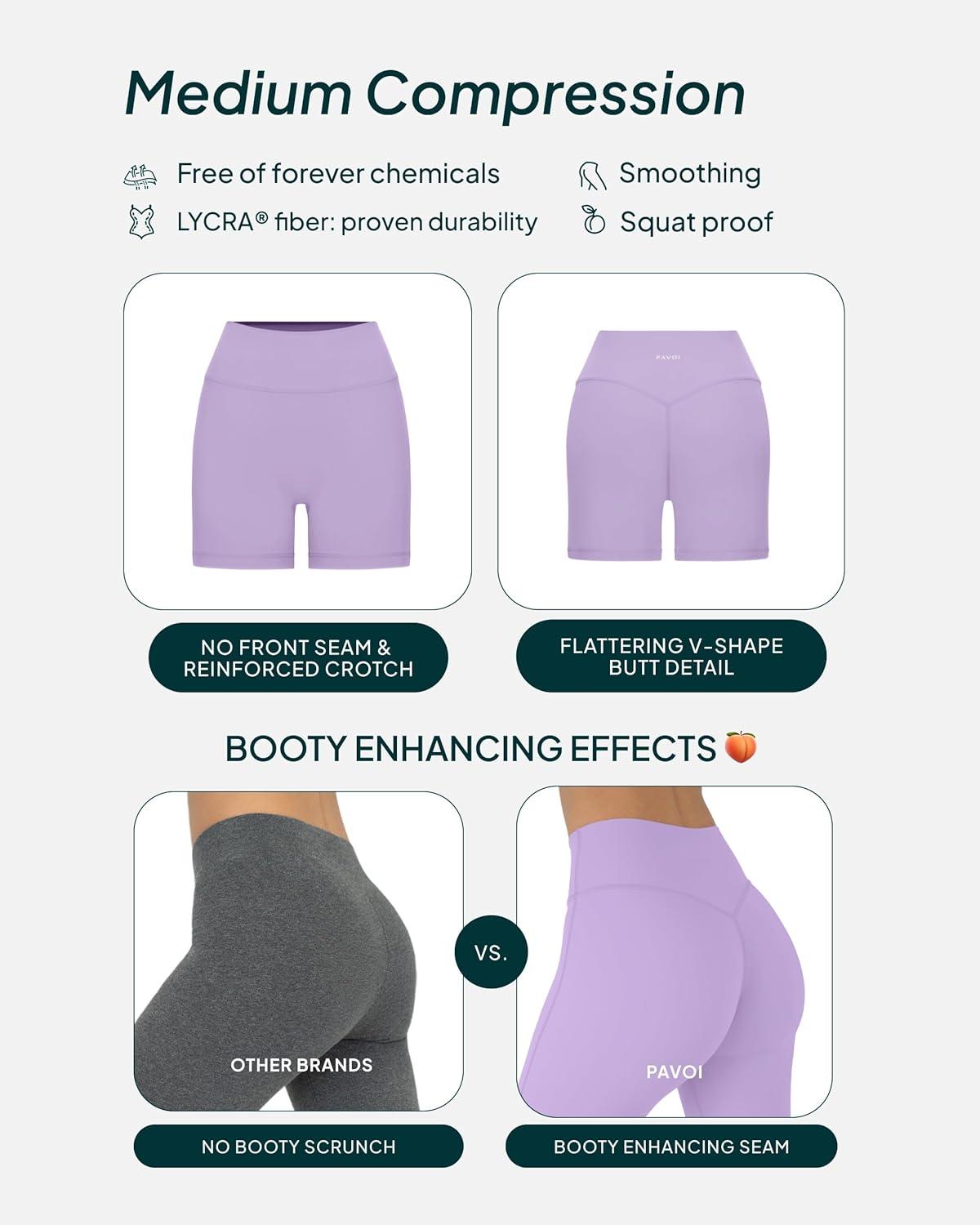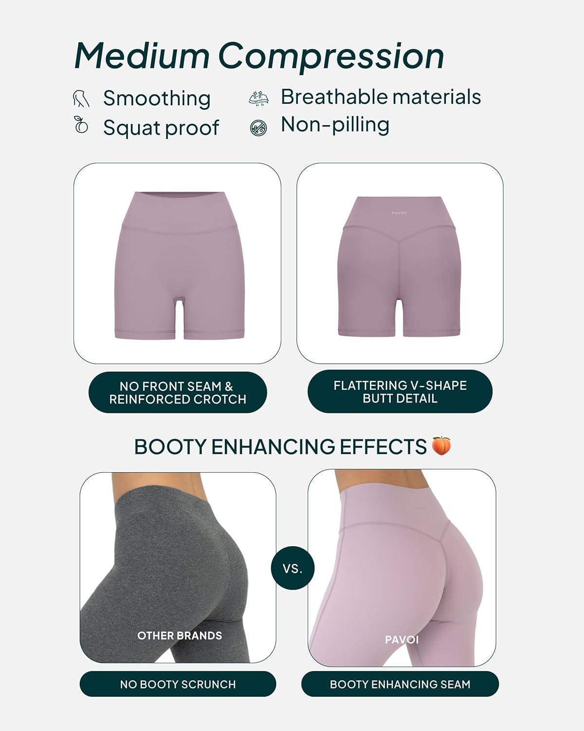 PAVOI ACTIVE Yoga Shorts for Women High Waisted Gym Shorts Buttery Soft Biker Workout Shorts 4″ & 6″ Compression Fit(Lilac)