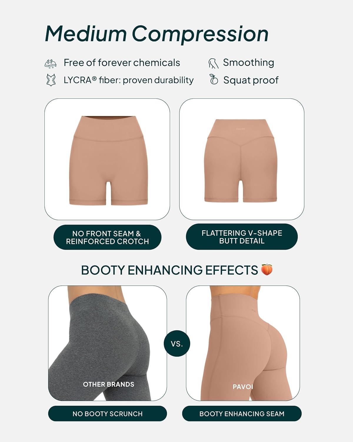 PAVOI ACTIVE Yoga Shorts for Women High Waisted Gym Shorts Buttery Soft Biker Workout Shorts 4″ & 6″ Compression Fit(Sienna)