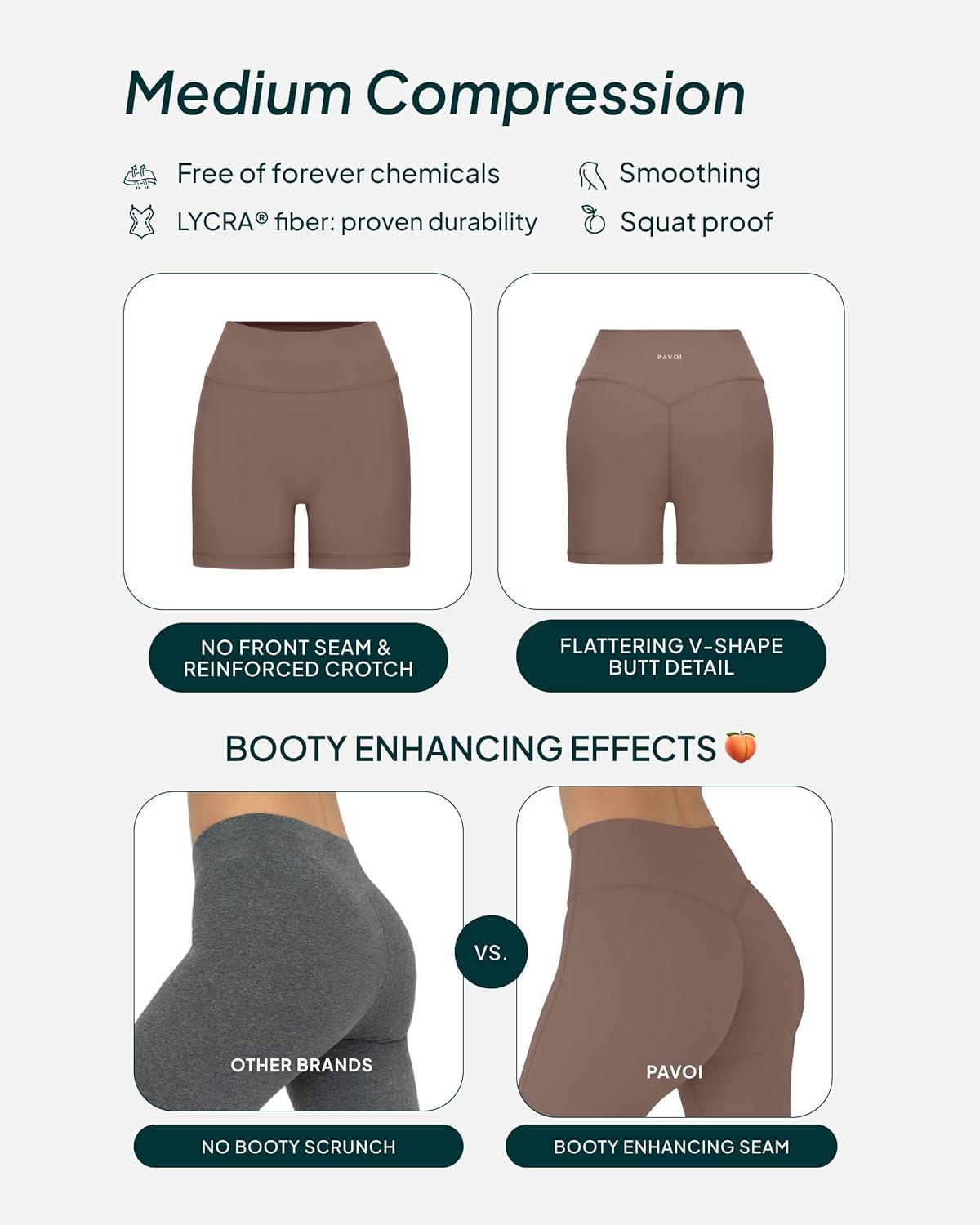 PAVOI ACTIVE Shorts with Pockets | Compressive High Waisted Butt Sculpting 4″ & 6″ Women’s Biker Shorts | HiPerform XXS to 3X(Cocoa)
