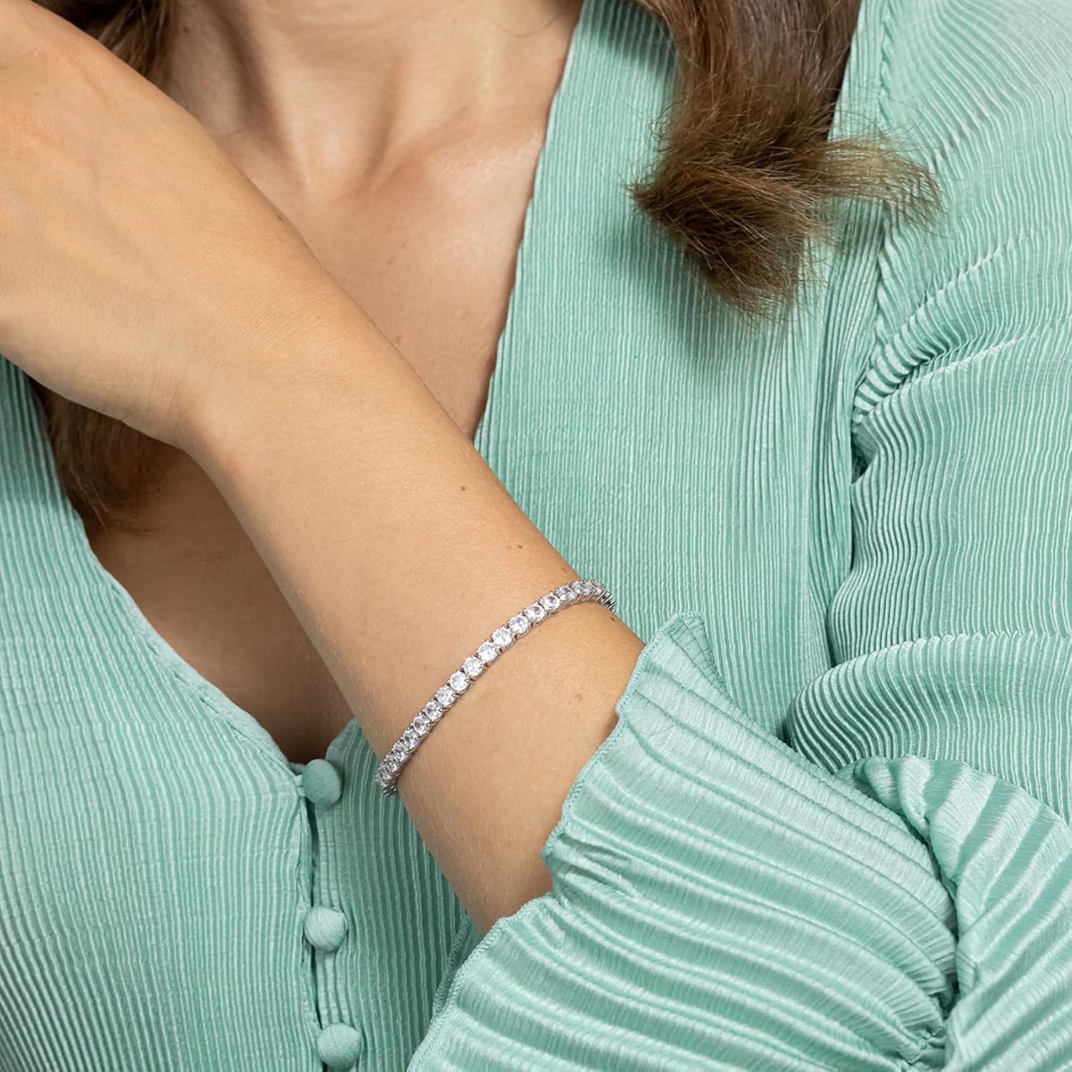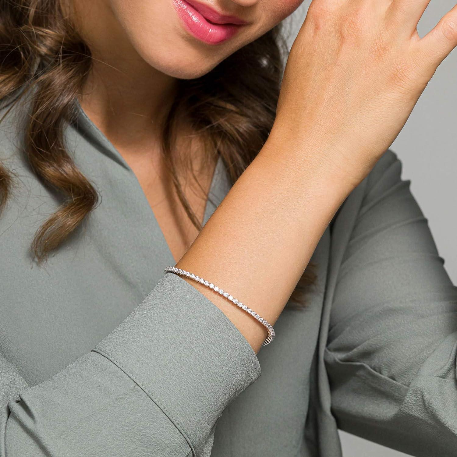 PAVOI 14K Gold Plated Cubic Zirconia Classic Tennis Bracelet | Gold Bracelets for Women | 4mm CZ, Size 6.5-7.5 Inch(White Gold)