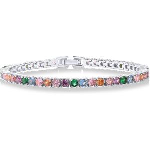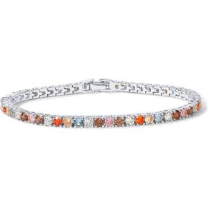 PAVOI 14K Gold Plated 3mm Multi Colored CZ Tennis Bracelet | Vibrant Cubic Zirconia Bracelet for Women | Size 6.5-7.5 Inch(White Gold)