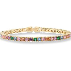 PAVOI 14K Gold Plated 3mm Multi Colored CZ Tennis Bracelet | Vibrant Cubic Zirconia Bracelet for Women | Size 6.5-7.5 Inch(Yellow Gold)