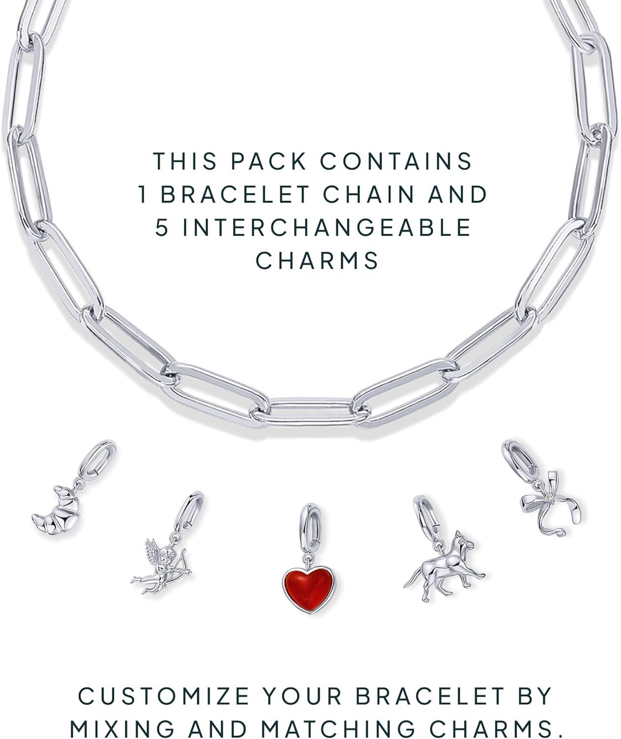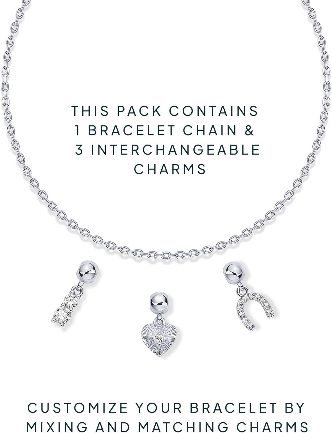 PAVOI 14K Gold Plated Bracelet for Women | Adjustable 7-Inch Sliding Ball Charm Bracelet Set with Removable Horseshoe, Heart, and Cubic Zirconia Charms | Trendy Gold Chain Jewelry(Heart)