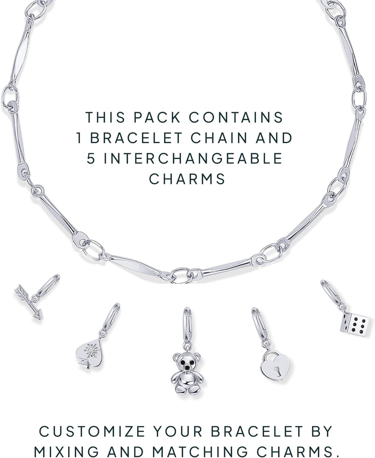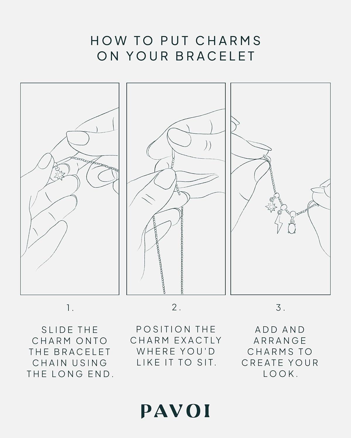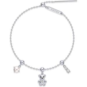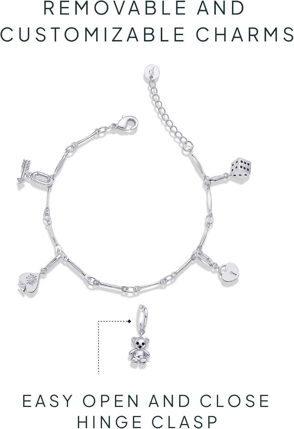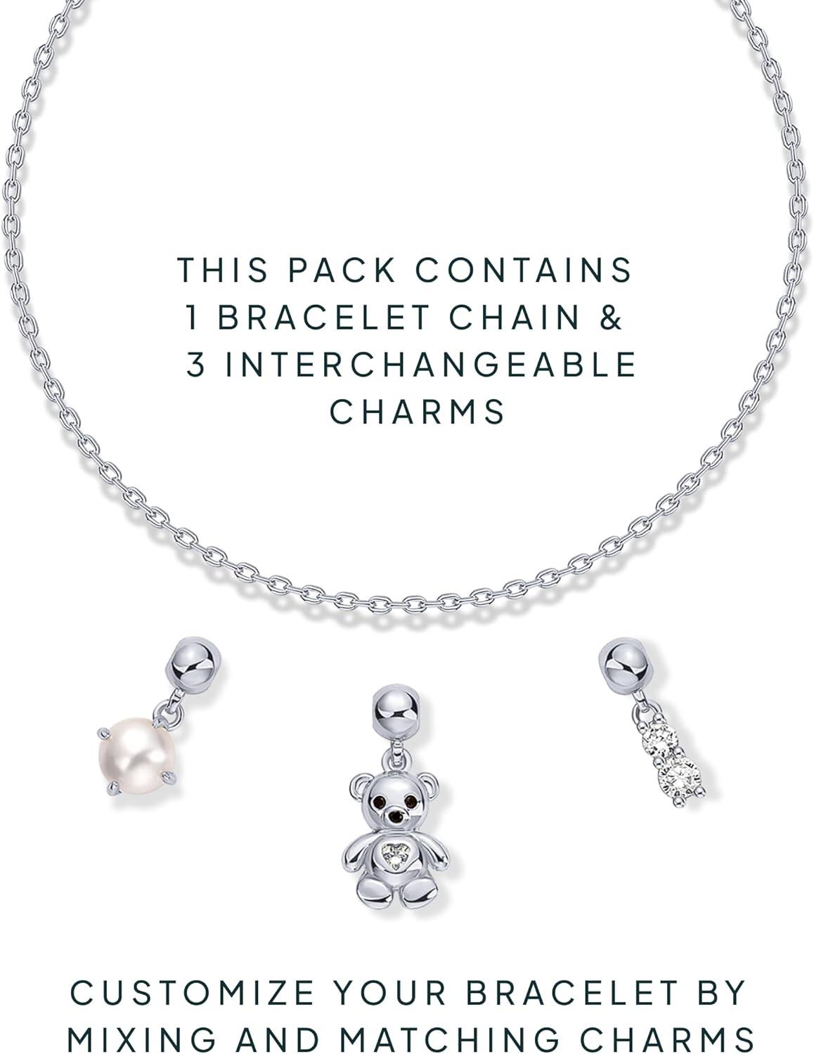 PAVOI 14K Gold Plated Bracelet for Women | Adjustable 7-Inch Sliding Ball Charm Bracelet Set with Removable Horseshoe, Heart, and Cubic Zirconia Charms | Trendy Gold Chain Jewelry(Teddy Bear)