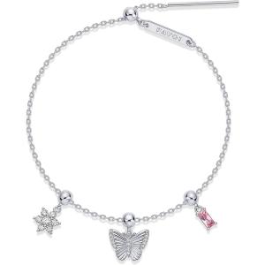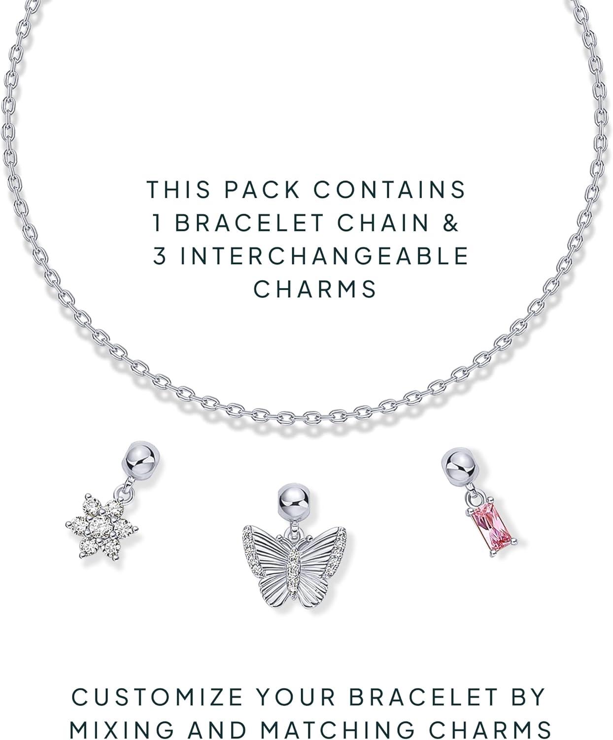 PAVOI 14K Gold Plated Bracelet for Women | Adjustable 7-Inch Sliding Ball Charm Bracelet Set with Removable Horseshoe, Heart, and Cubic Zirconia Charms | Trendy Gold Chain Jewelry(Butterfly)