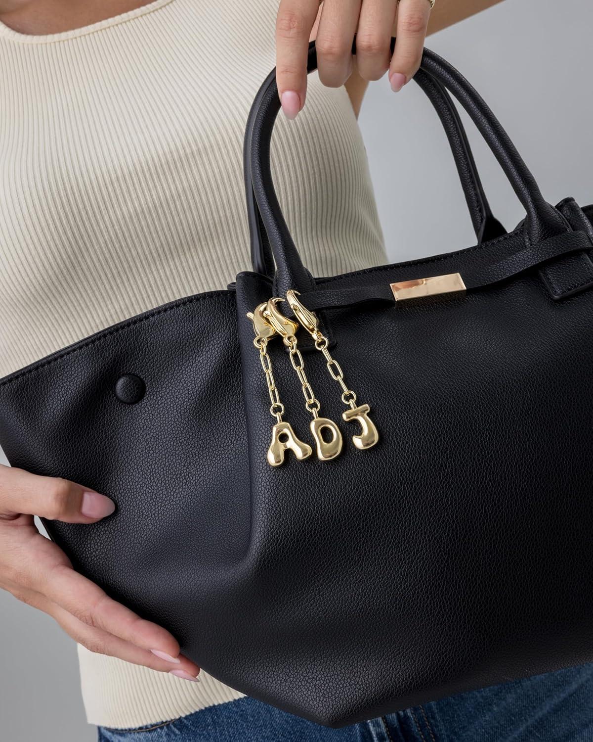 PAVOI 14K Gold Plated Bubble Letter Bag Charm for Handbags – Gold Initial Letter Keychain for Women – Chunky Purse Charm Gift(J)