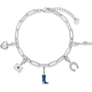 PAVOI 14K Gold Plated Adjustable Bracelet for Women | Twisted Bar & Paperclip Charm Chain Bracelets with Moon, Evil Eye, Teddy Bear, Heart Lock, Airplane, Dog, Cowboy Boot, Cat, Cupid & More | Fashion Jewelry(Cowgirl Boot)
