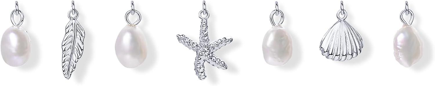PAVOI 14K Gold Plated Beach Charm Necklace for Women – Dainty Paperclip Chain Trendy Beachy Multi Charm Necklace – Gold Ocean Summer Jewelry with Freshwater Pearl, Sea Shell, Starfish(White Gold)